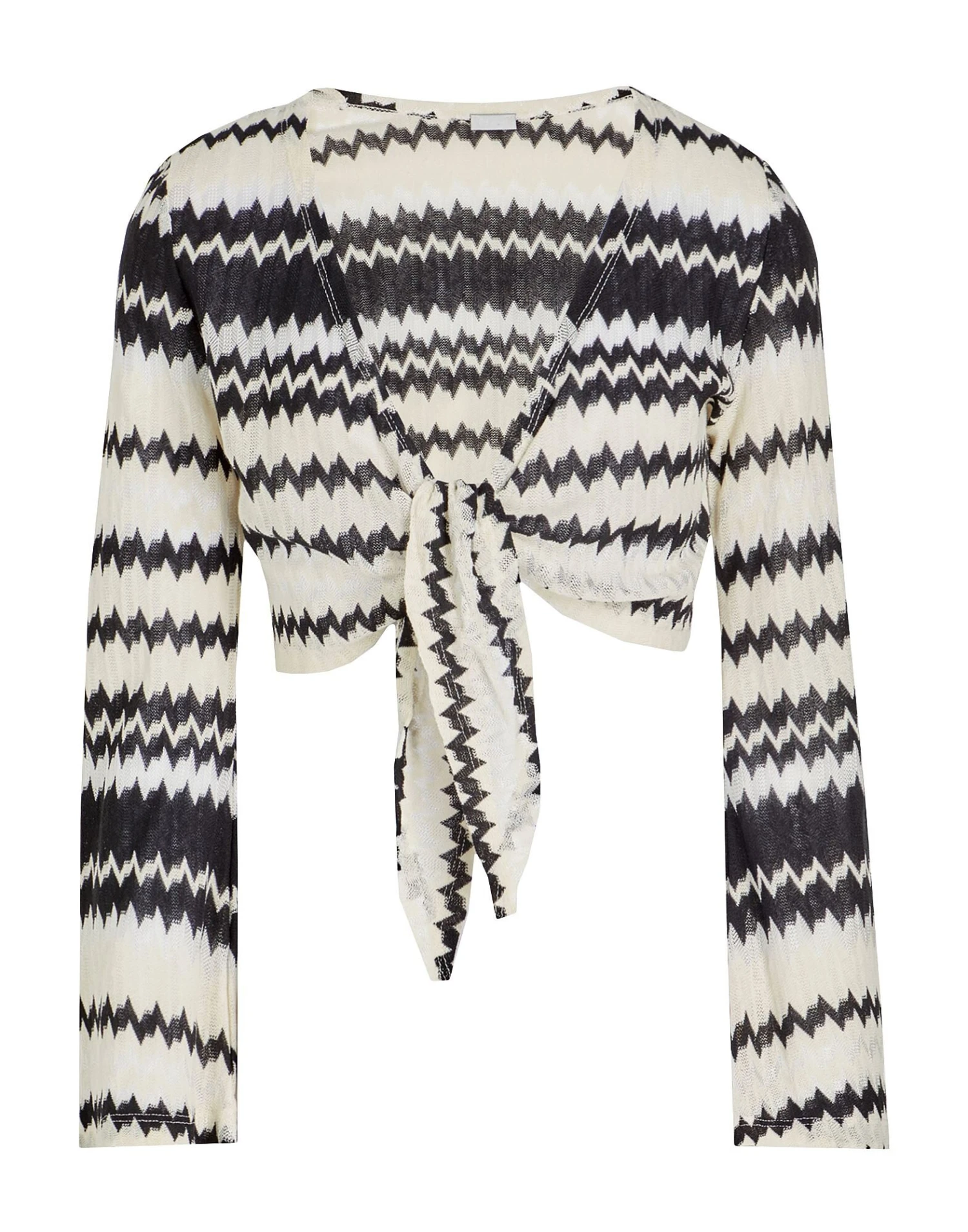 knitted, lightweight knit, no appliqués, multicolor pattern, v-neck, long sleeves, bell sleeves, unlined