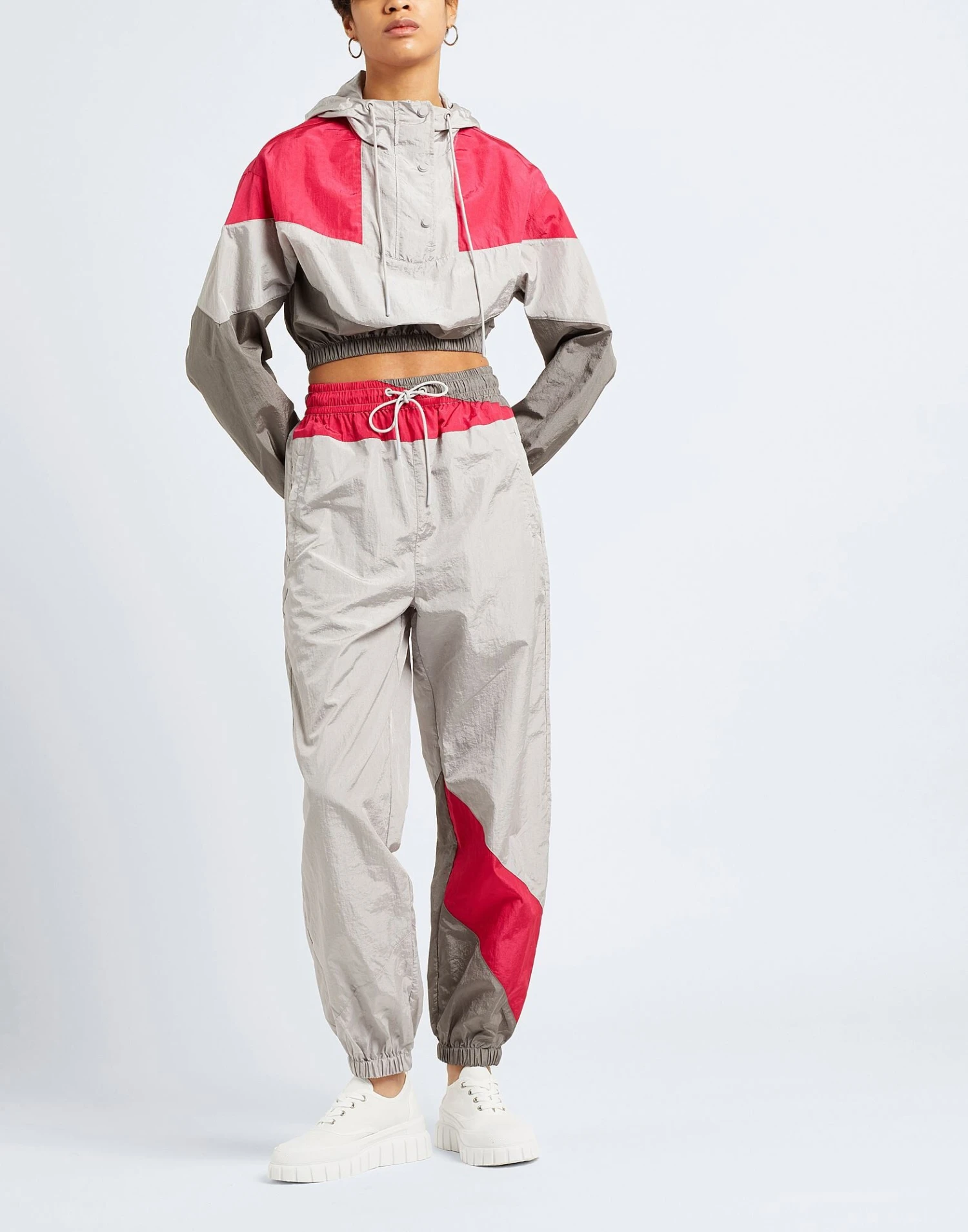This jacket features a balloon silhouette, created thanks to the elastic on the cuff and bottom. Designed with a hood and produced in recycled technical fabric with colour-block pattern, it features a zip and press stud fastening. The recycled polyamide used to make this garment is produced from synthetic scraps which reduces the amount of refuse in landfills and oceans. The model is wearing an Italian size 40/S.