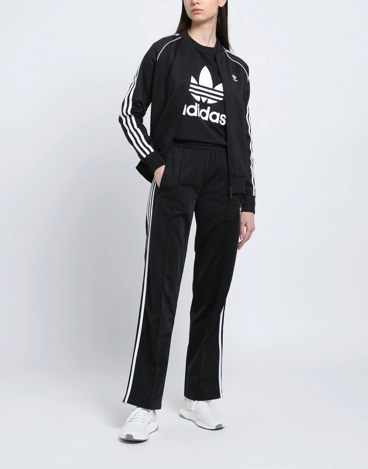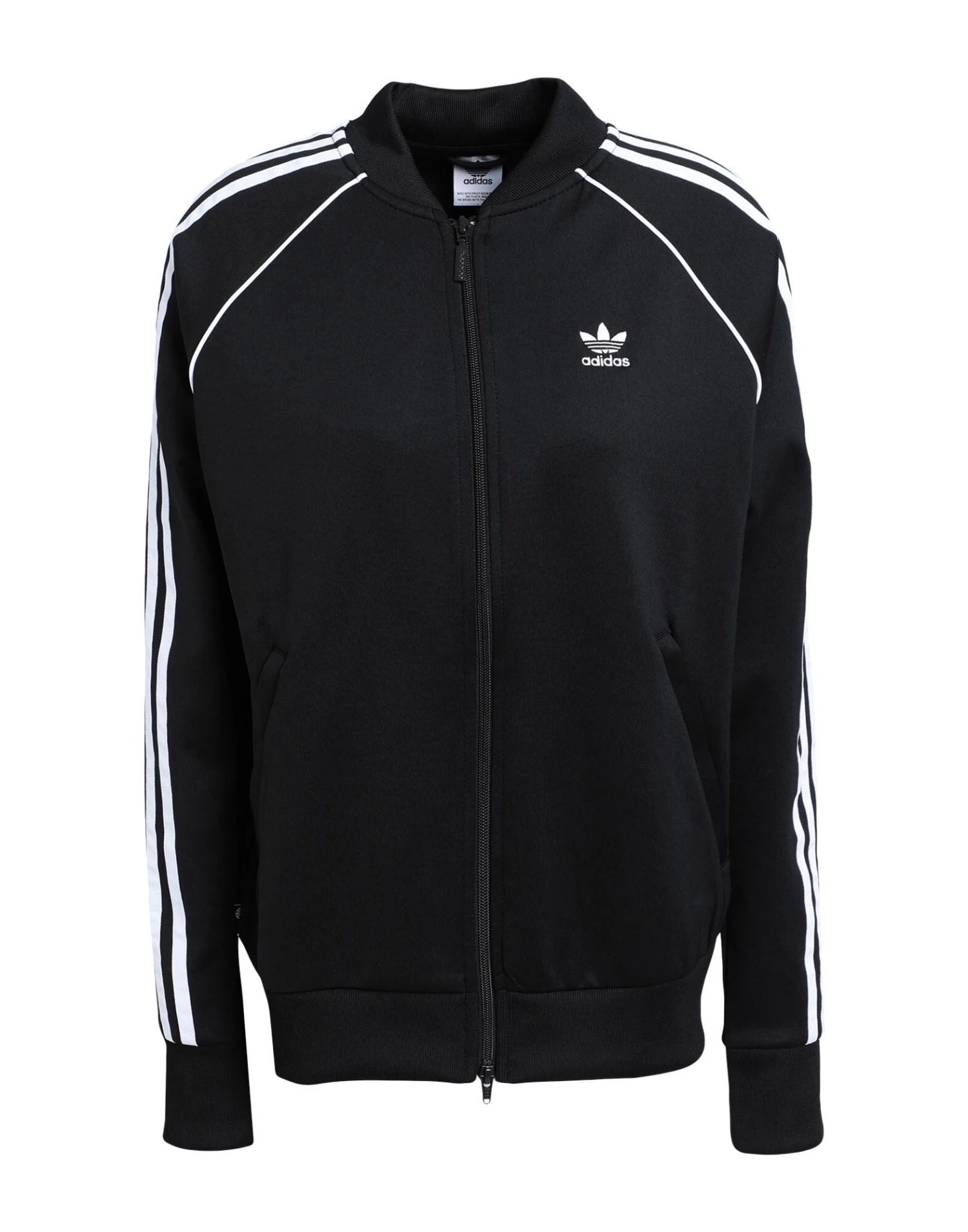 synthetic jersey, side seam stripes, brand logo, solid colour with appliqués, round collar, long sleeves, ribbed cuffs, zipper closure, multipockets, stretch, lifestyle