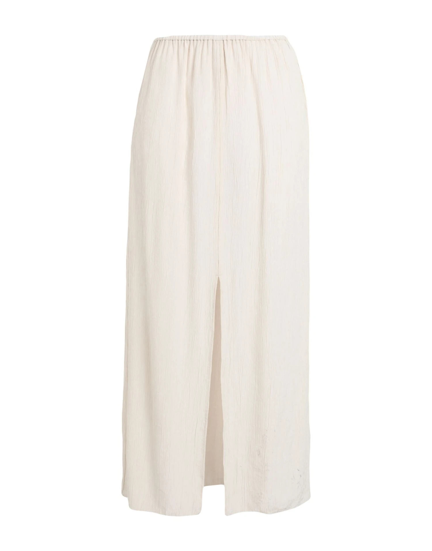 crepe, no appliqués, solid color, unlined, elasticized, front slit, flared model