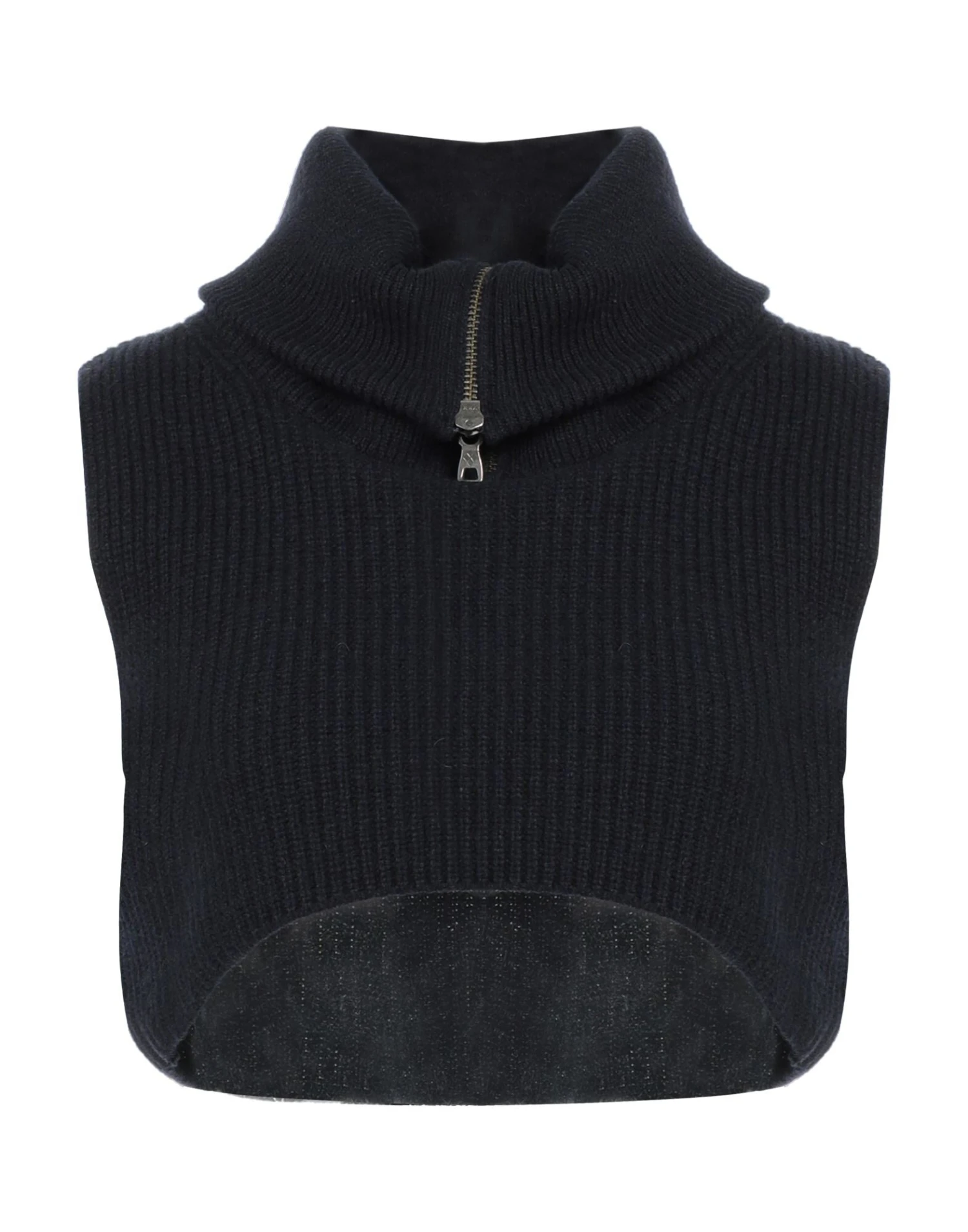 knitted, lightweight knit, no appliqués, solid color, turtleneck, sleeveless, zipper closure, no pockets