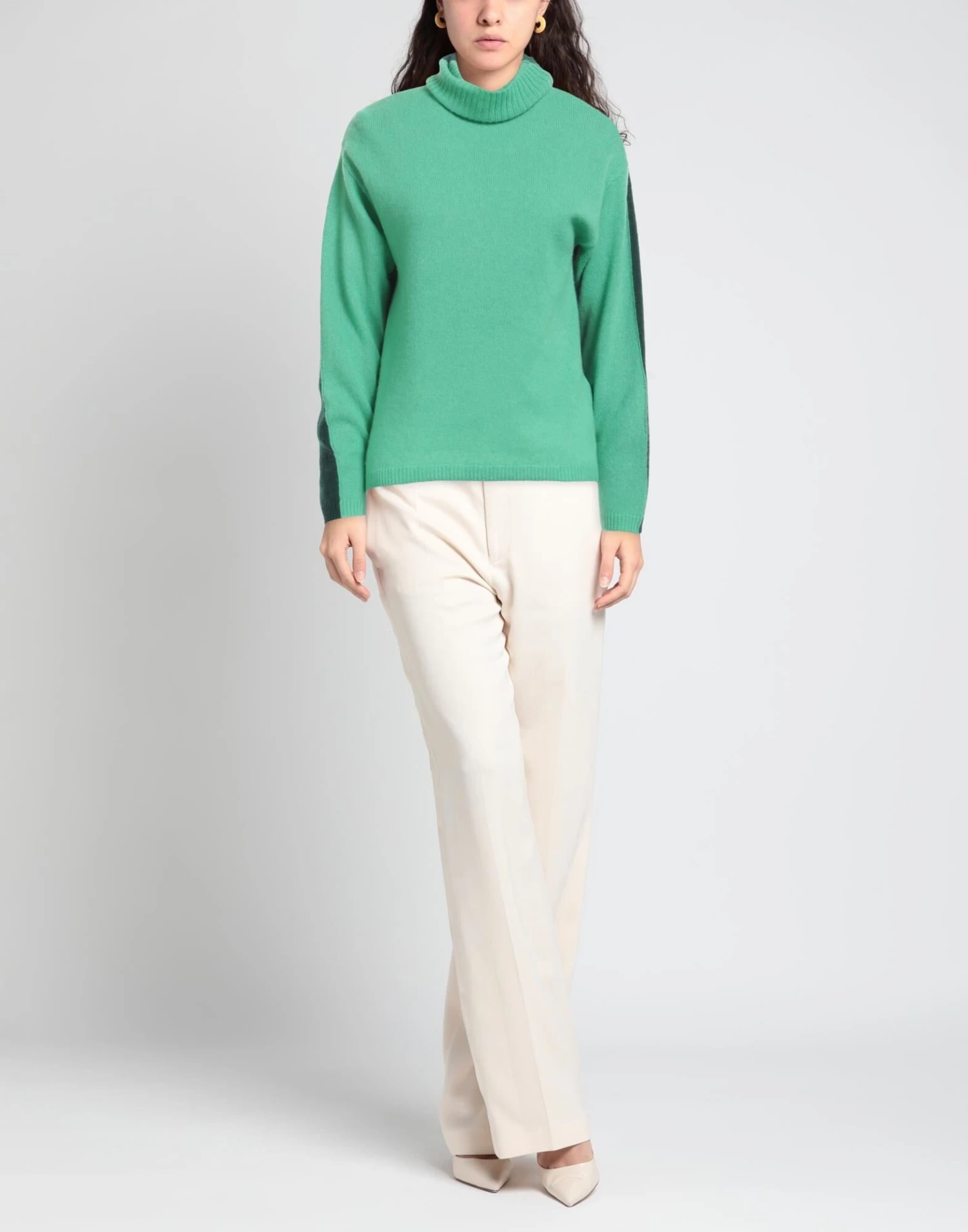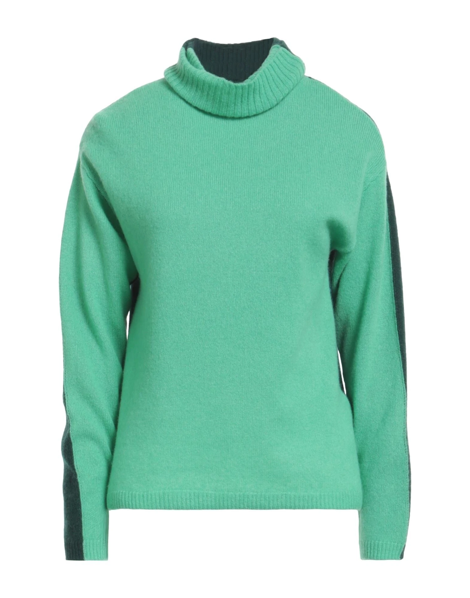 knitted, medium-weight knit, no appliqués, two-tone, turtleneck, long sleeves, no pockets