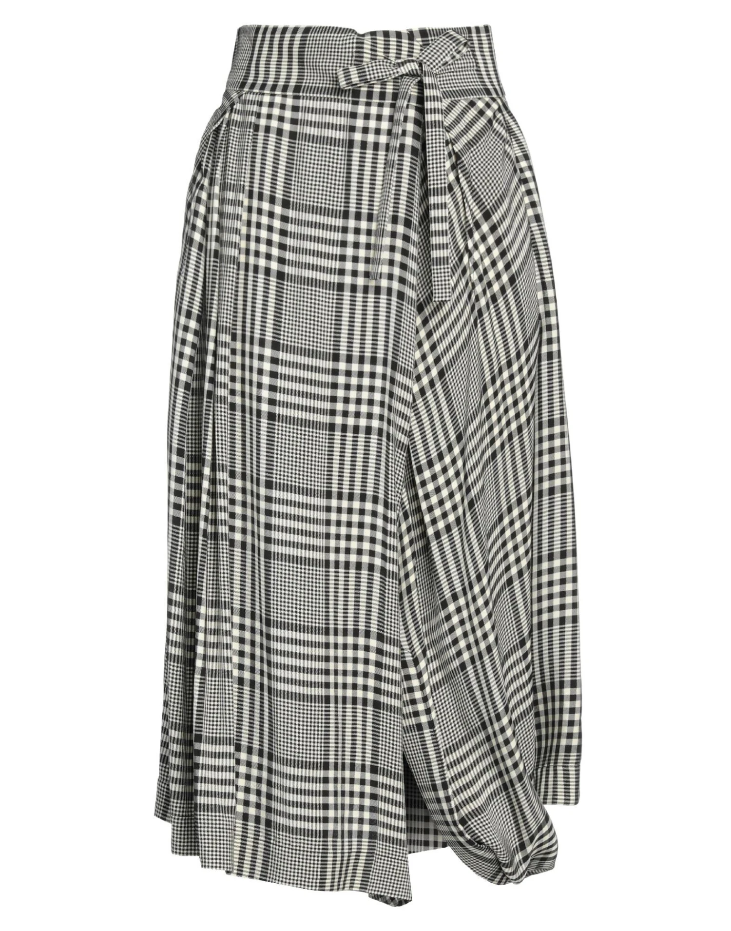 twill, no appliqués, glen plaid, self-tie closure, hook-and-eye closure, multipockets, skirt, large sized