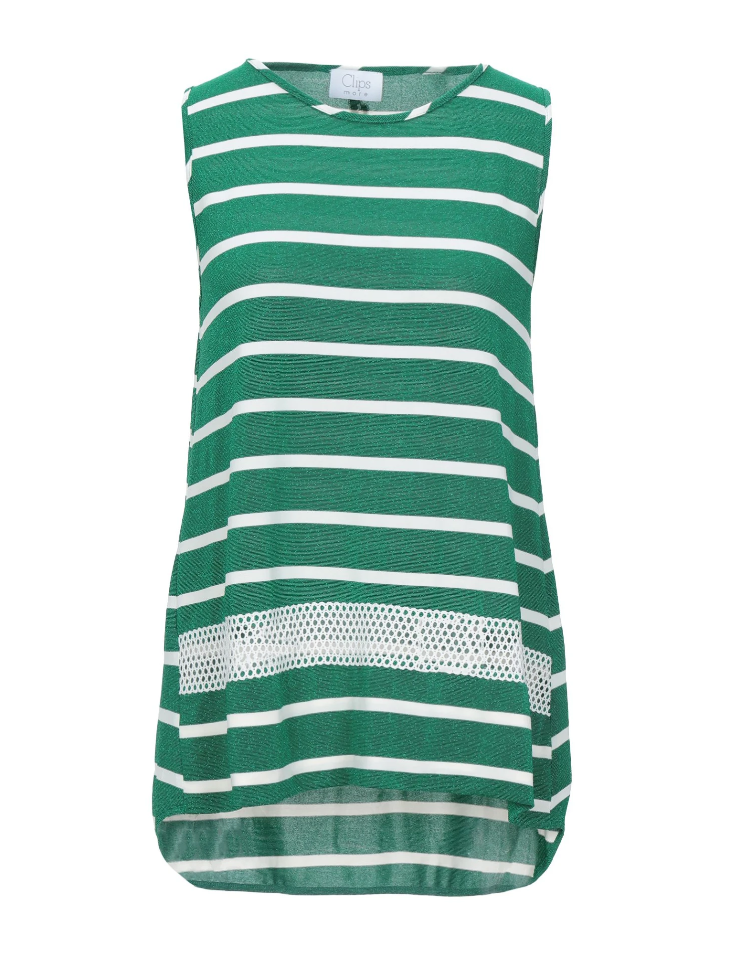 jersey, lamé, logo, stripes, round collar, sleeveless, no pockets, stretch