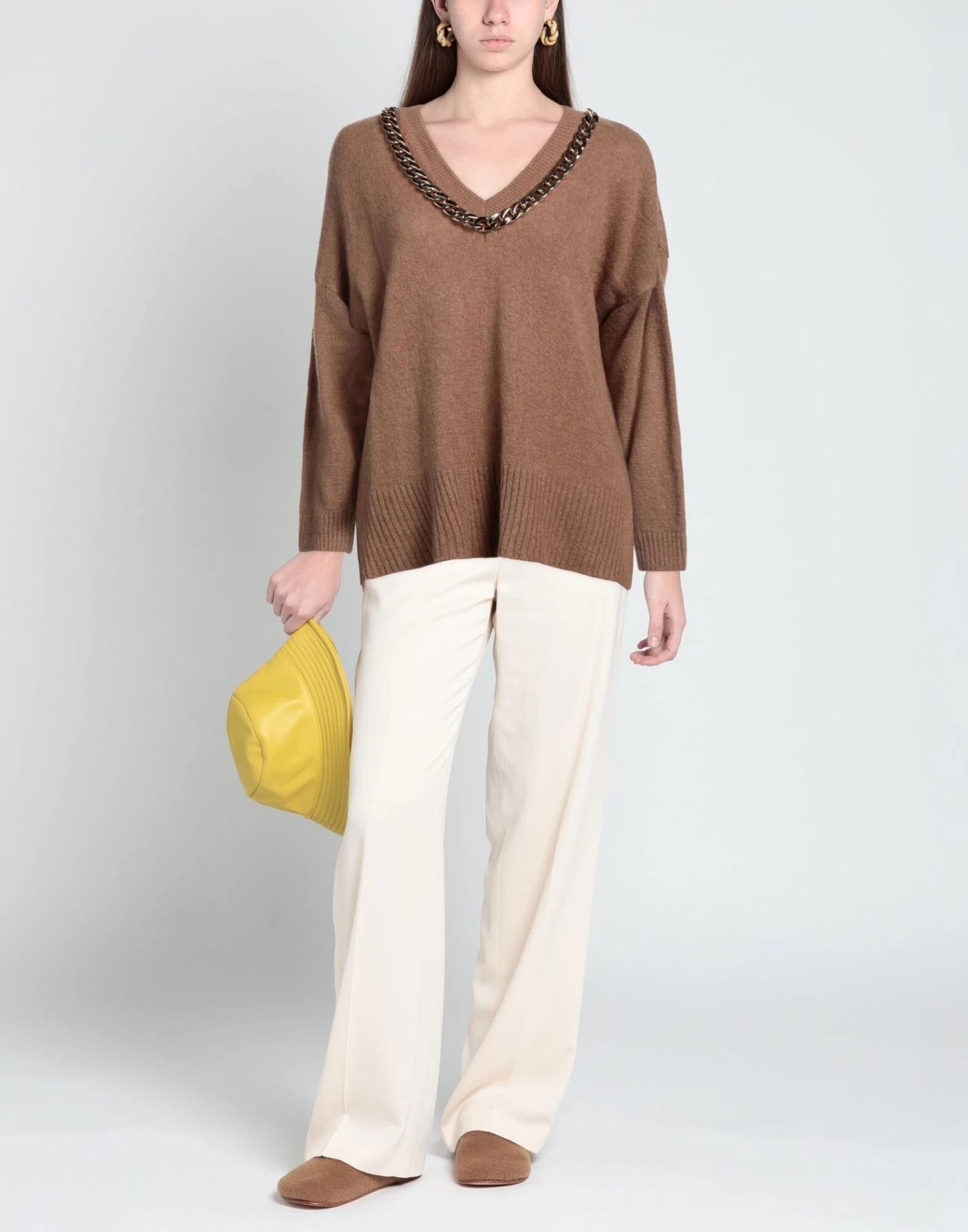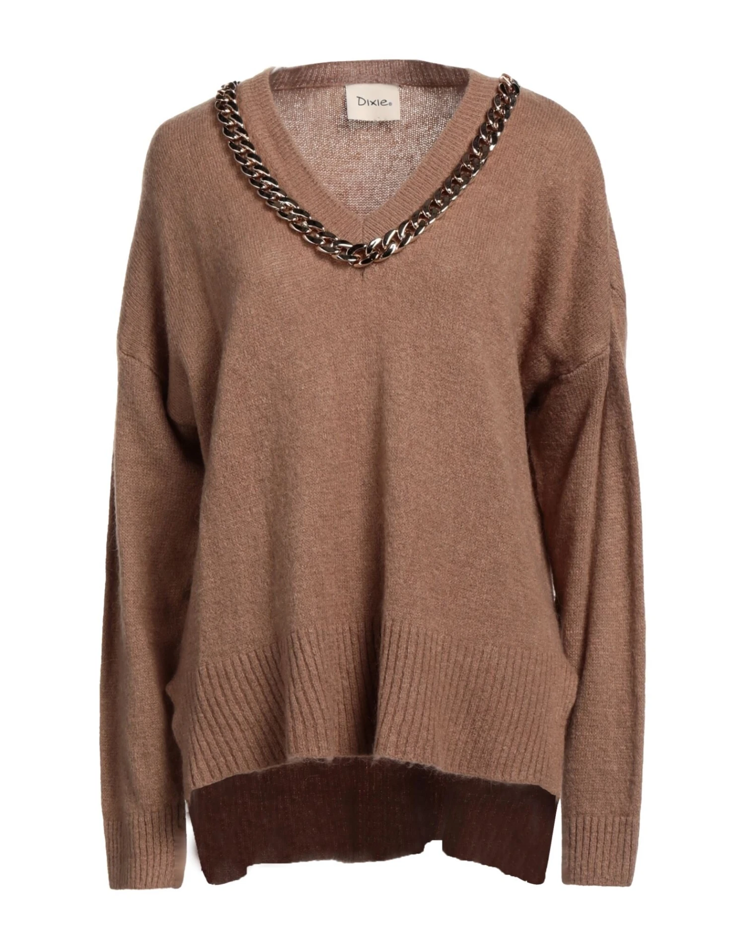 knitted, medium-weight knit, brand logo, metal applications, solid colour with appliqués, v-neck, long sleeves, unlined, no pockets