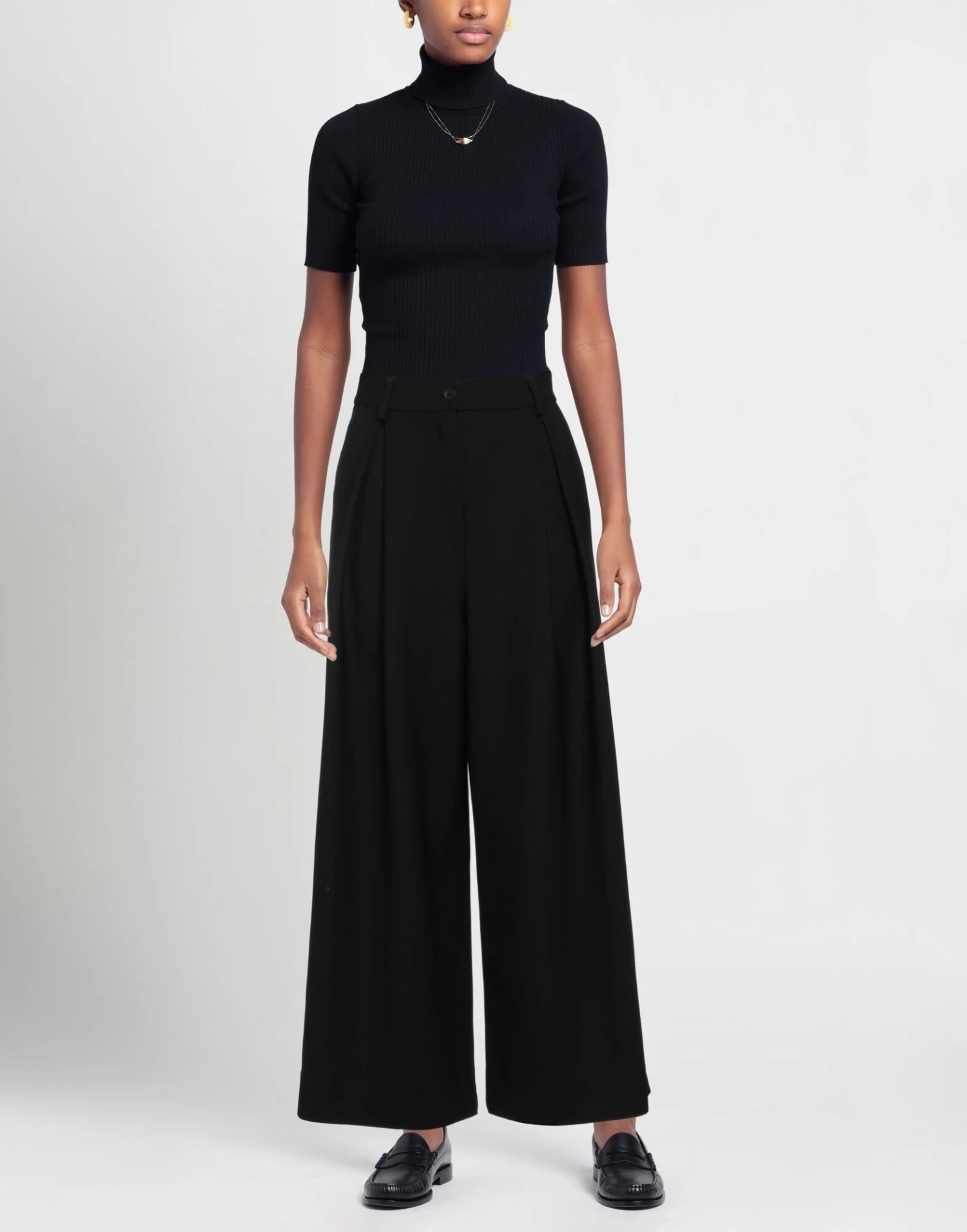plain weave, folds, solid color, high waisted, wide leg, regular fit, multipockets, stretch, tailored