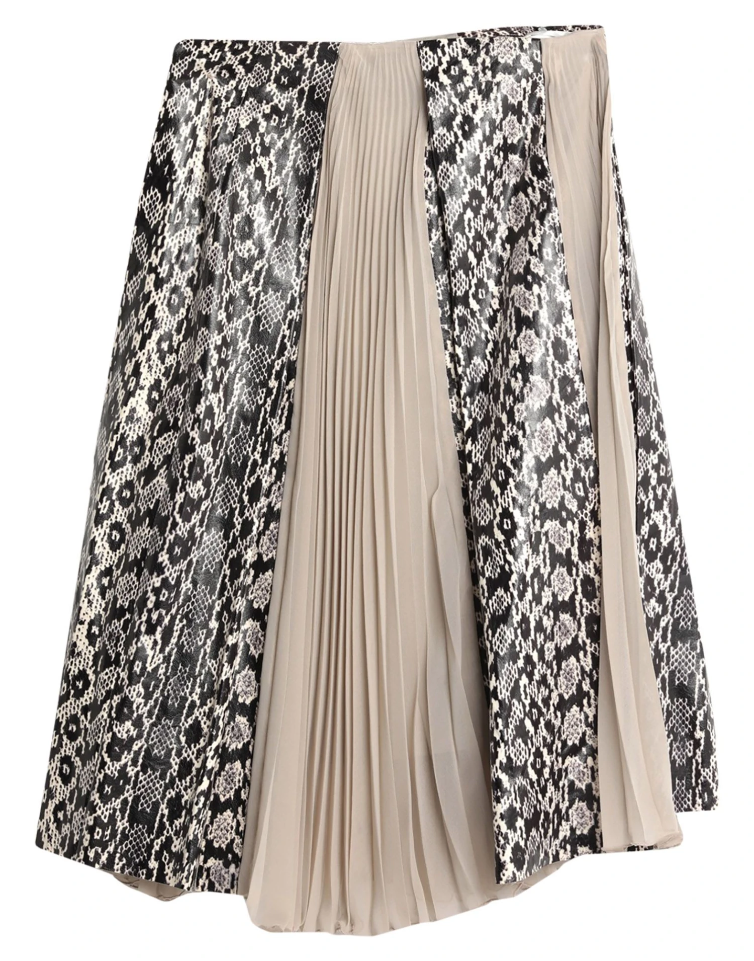 crepe, snakeskin print, no appliqués, multicolor pattern, no pockets, side closure, zipper closure, fully lined, contains non-textile parts of animal origin, large sized