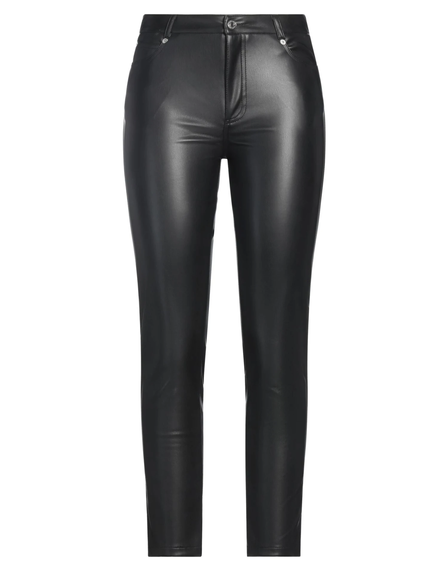 Coated fabric, Multipockets, Button closing, Solid color, Slim-leg pants, Tapered leg