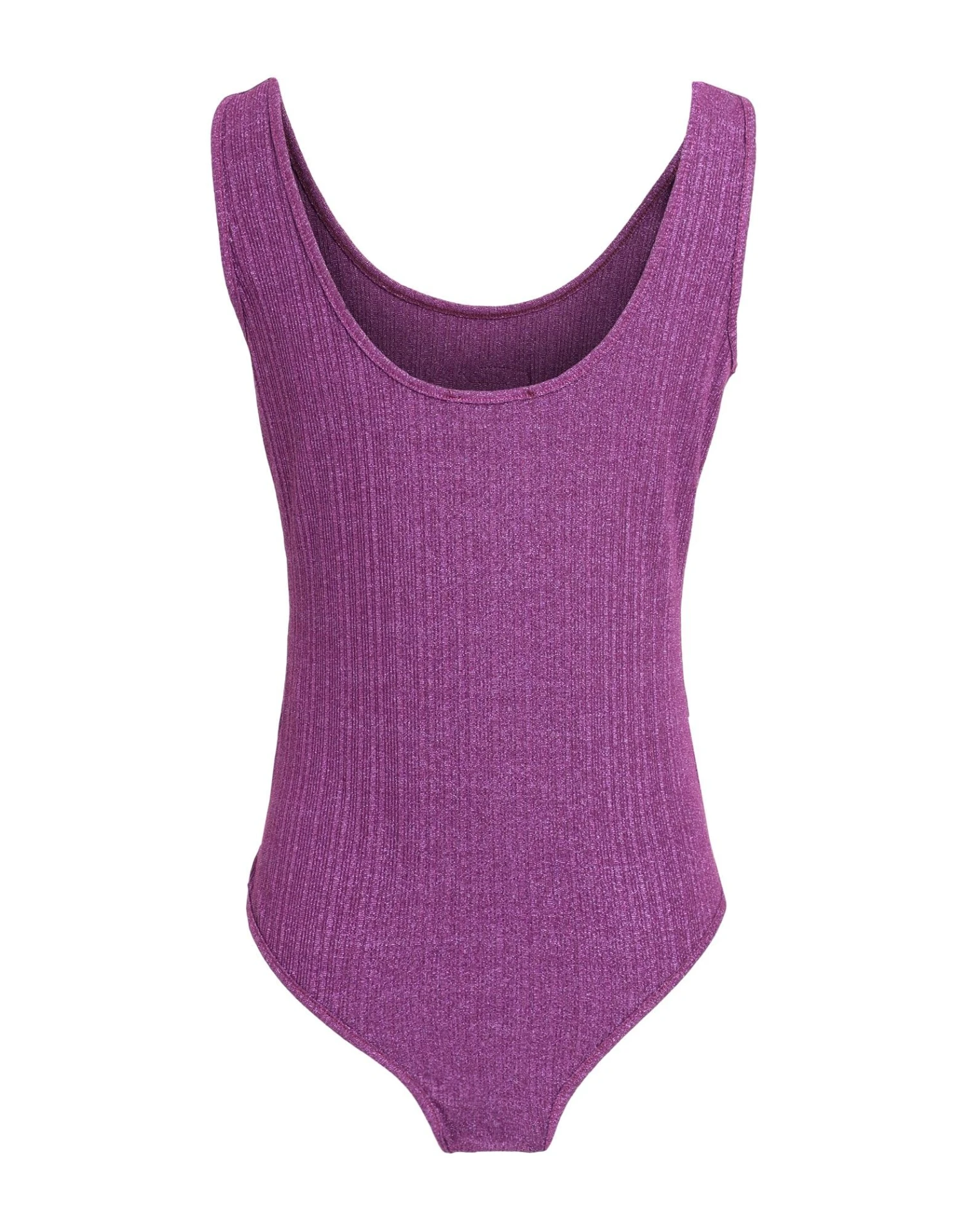 jersey, lamé, brand logo, solid color, wide neckline, sleeveless, snap buttons fastening, no pockets, crotch of body