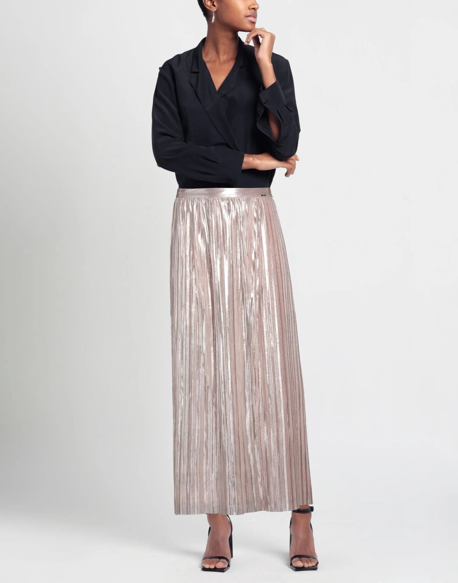 crepe, laminated effect, brand logo, solid color, regular fit, partially lined interior, zipper closure, no pockets, plissé model