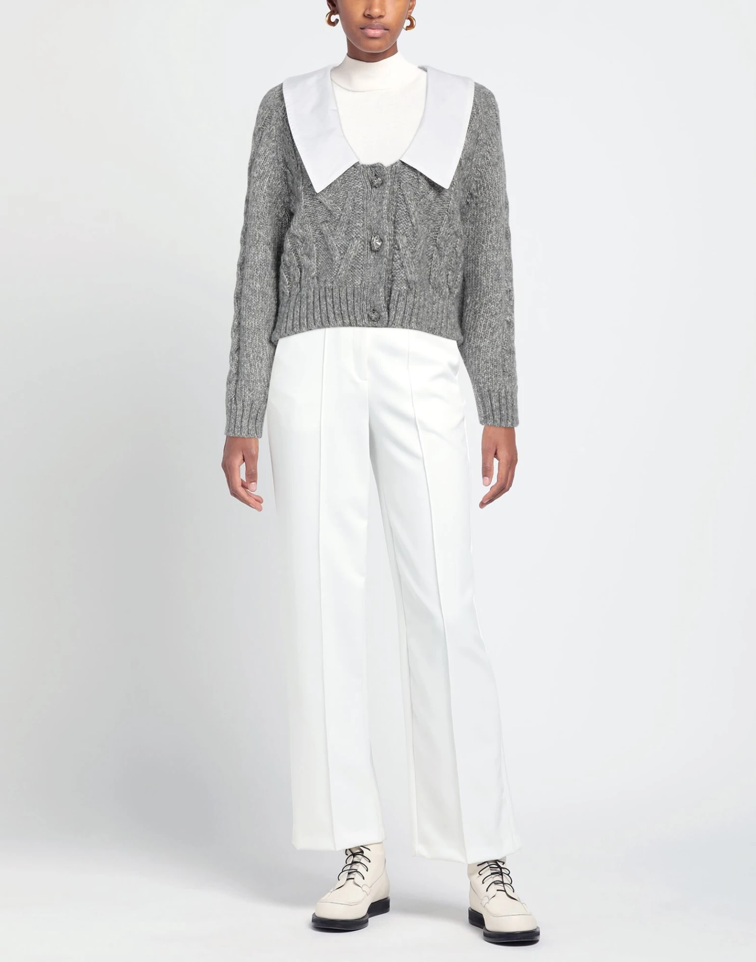 knitted, plain weave, cable stitch, mélange, medium-weight knit, no appliqués, two-tone, deep neckline, long sleeves, button closing, no pockets, small sized
