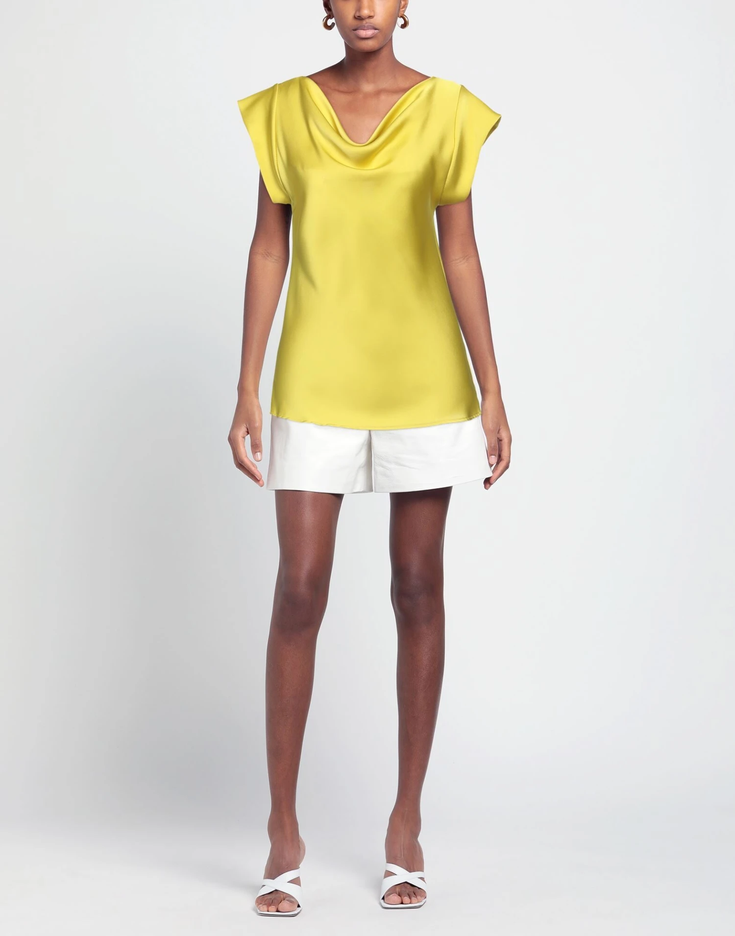 Crepe, Draped detailing, Short sleeves, Round collar, Solid color