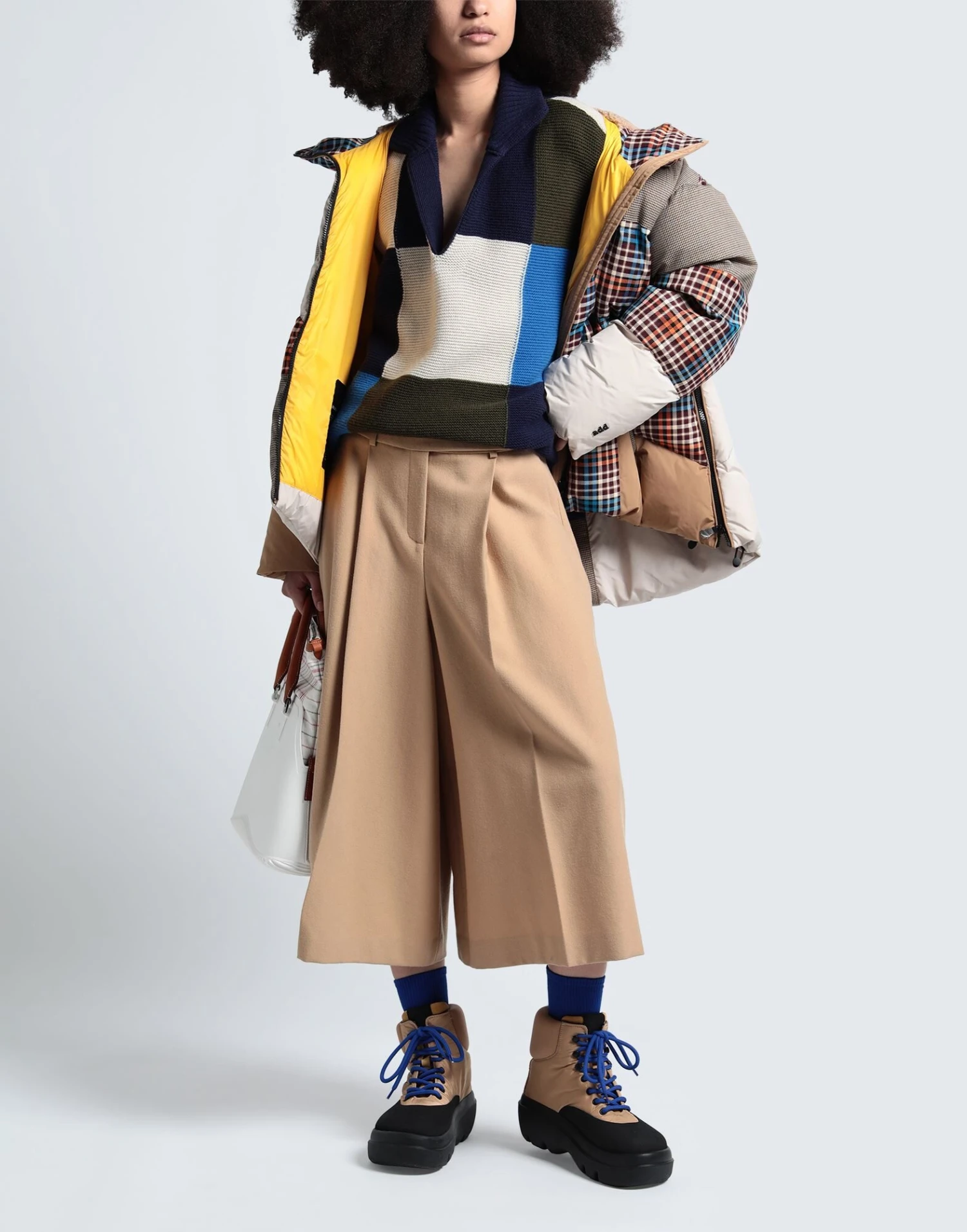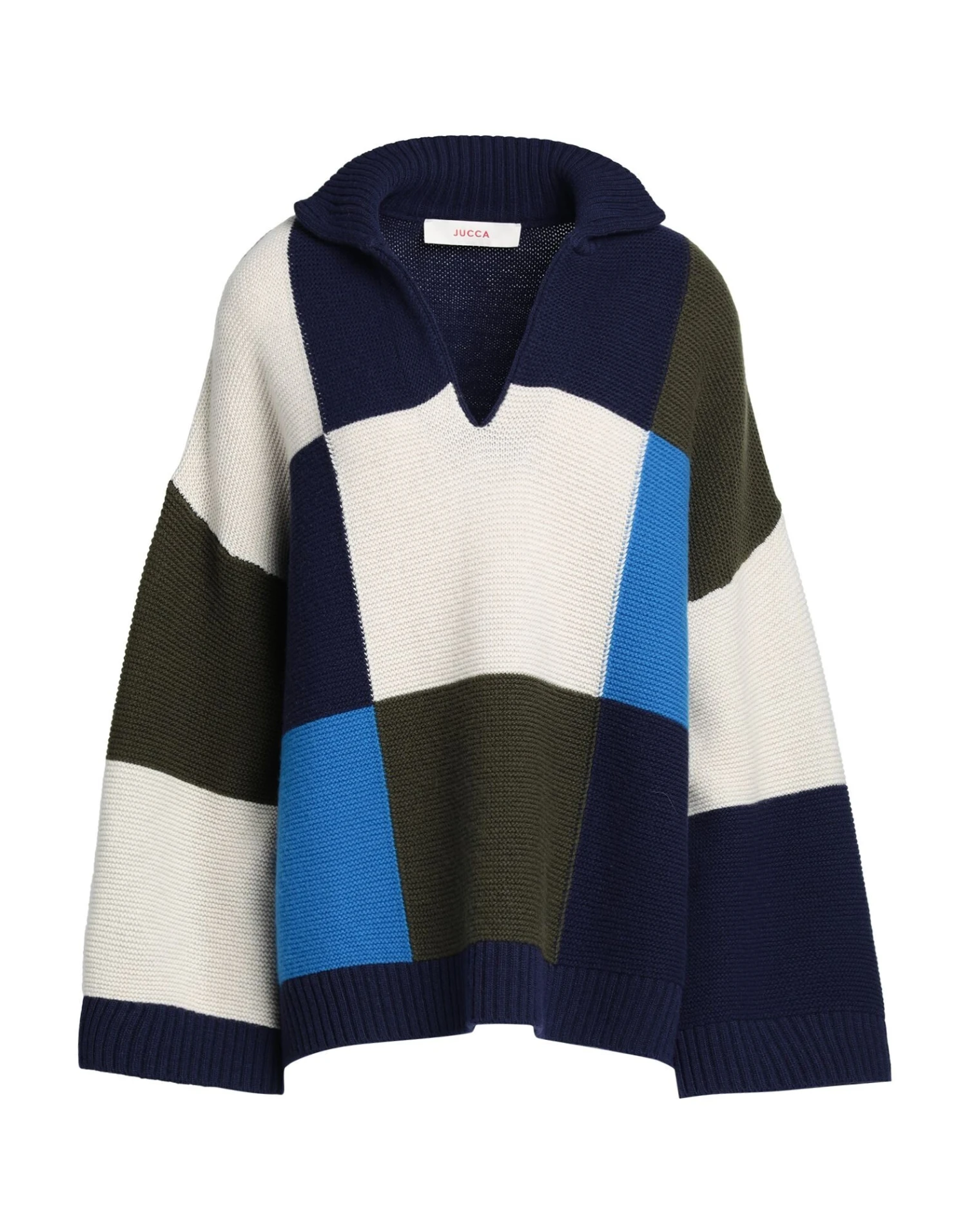 knitted, medium-weight knit, no appliqués, checked, multicolor pattern, polo collar, long sleeves, no pockets
