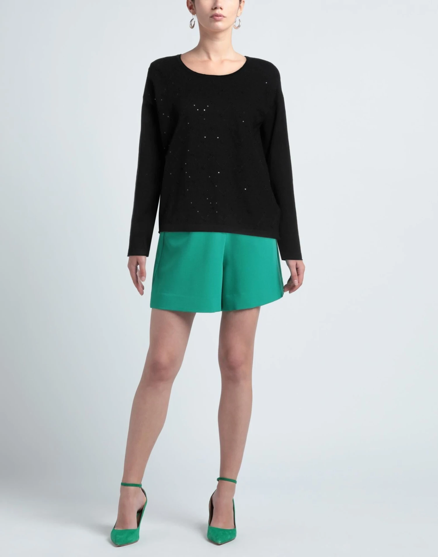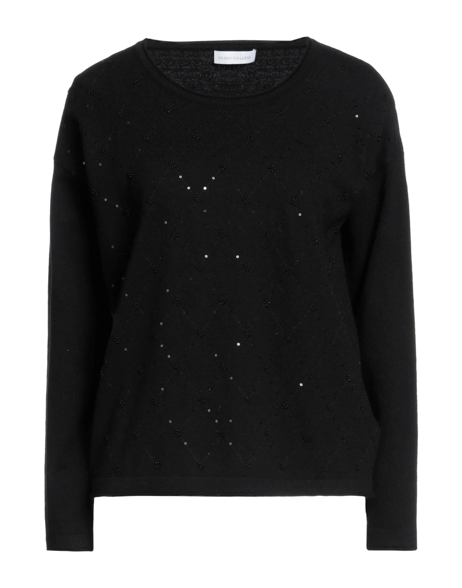 knitted, lightweight knit, sequins, beads, solid colour with appliqués, round collar, long sleeves, no pockets