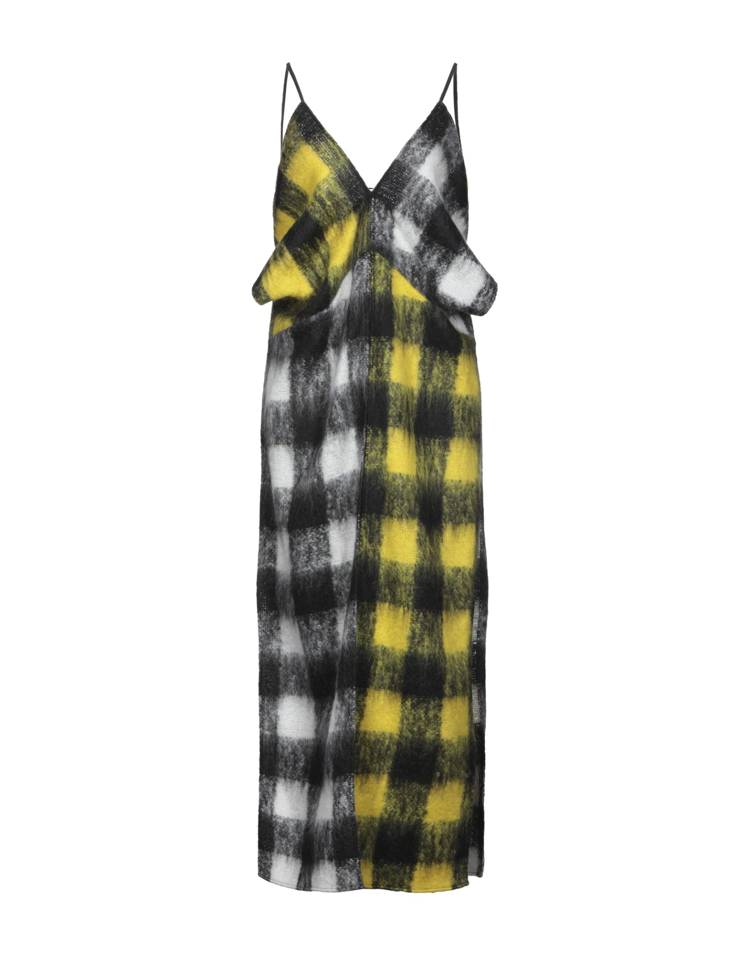 knitted, checked, v-neck, sleeveless, no pockets, side slit hemline, no appliqués