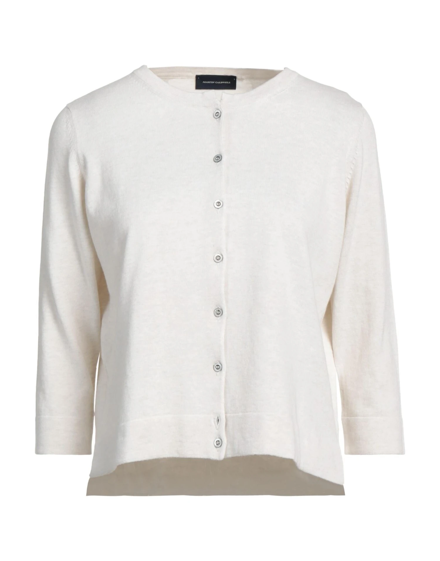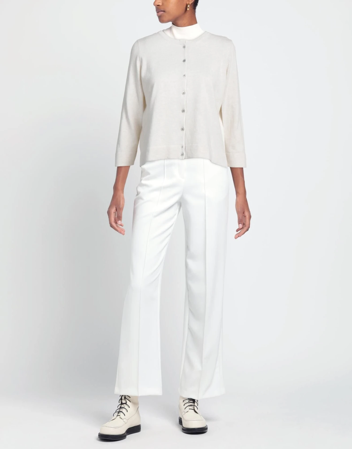 knitted, mélange, lightweight knit, no appliqués, solid color, round collar, 3/4 length sleeves, button closing, no pockets, side slit hemline