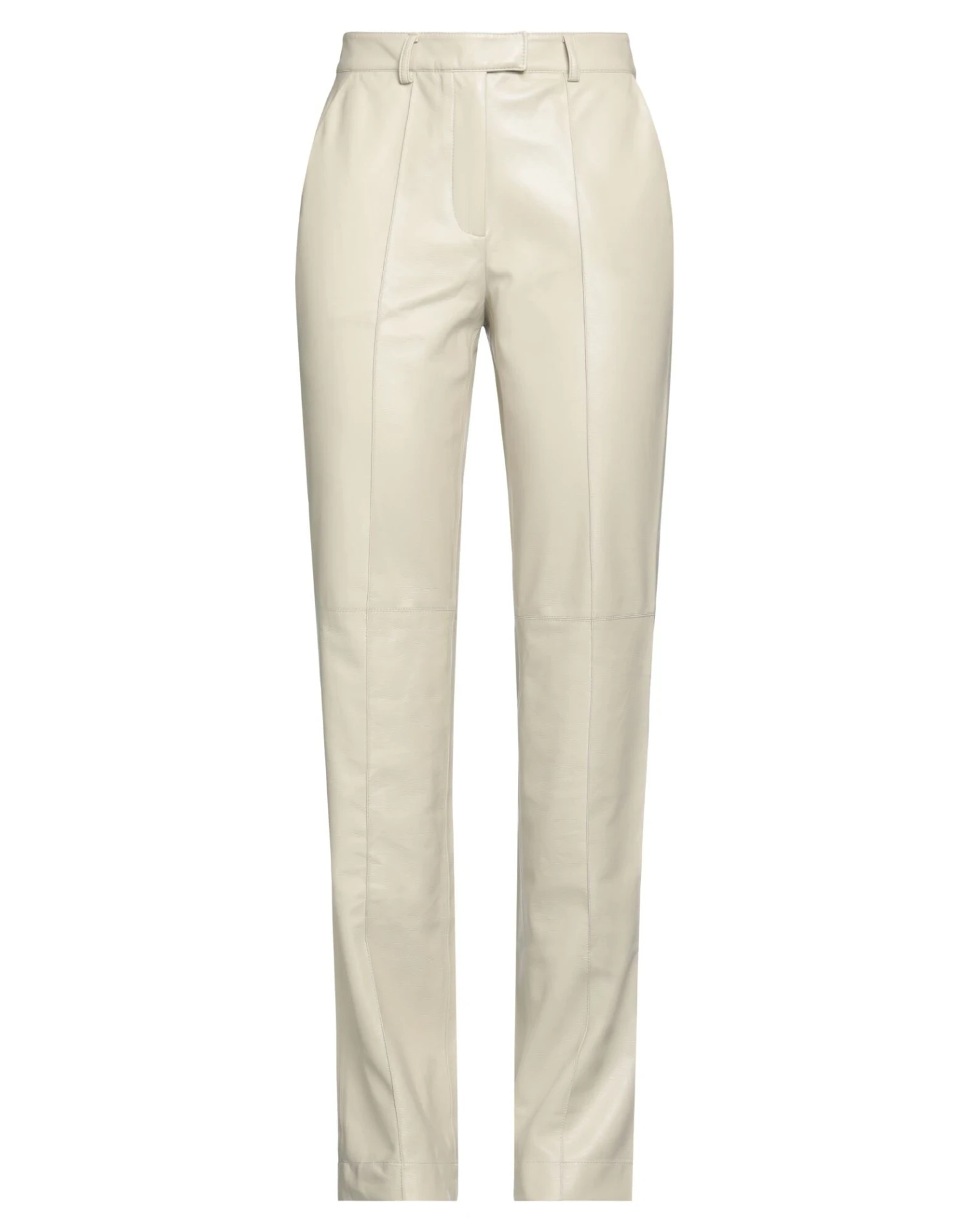 coated fabric, no appliqués, solid color, high waisted, straight leg, regular fit, zipper closure, multipockets, pants