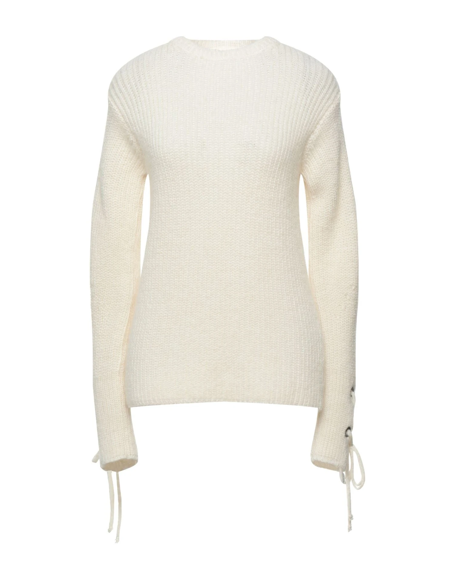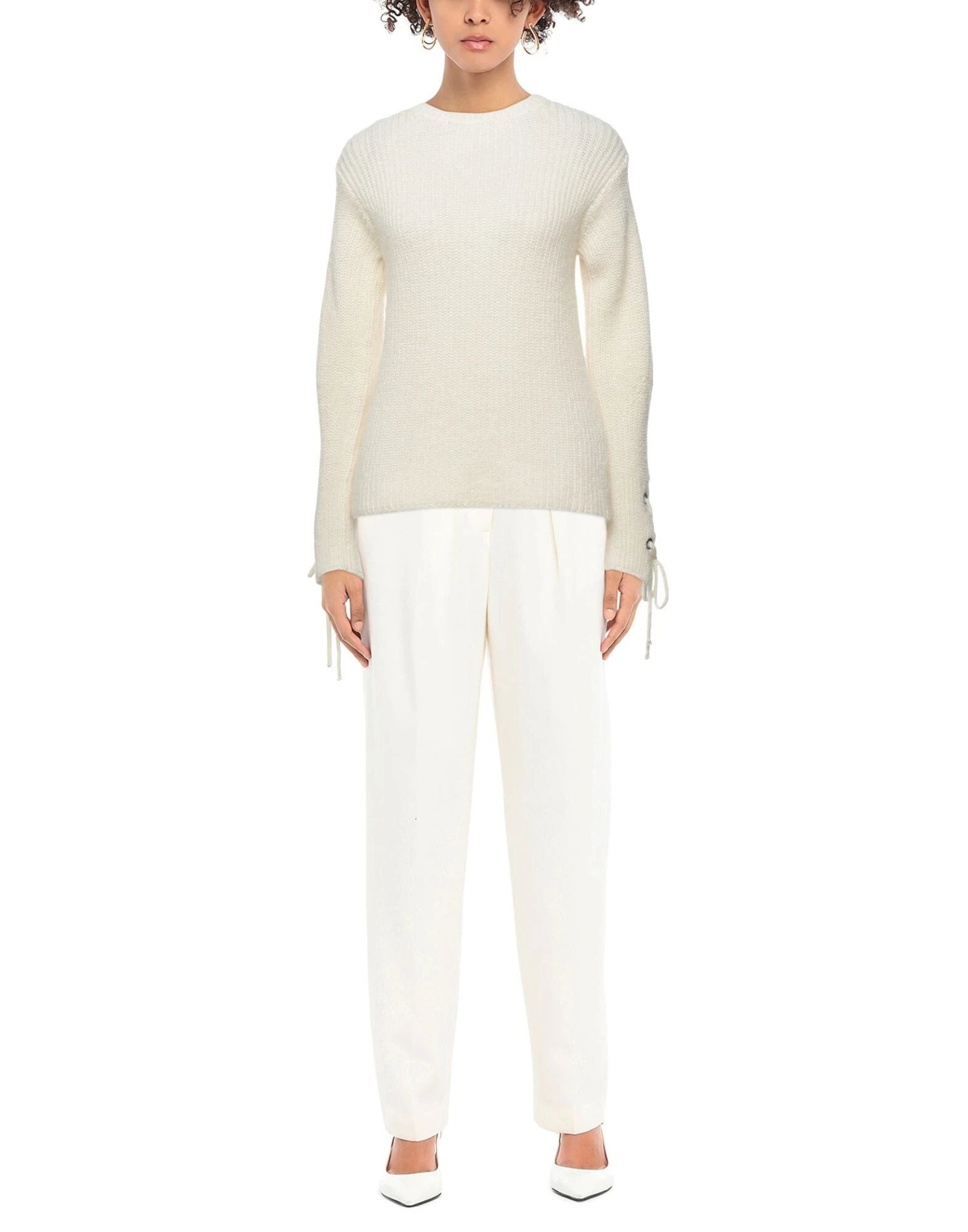knitted, medium-weight knit, laces, solid color, round collar, long sleeves, no pockets