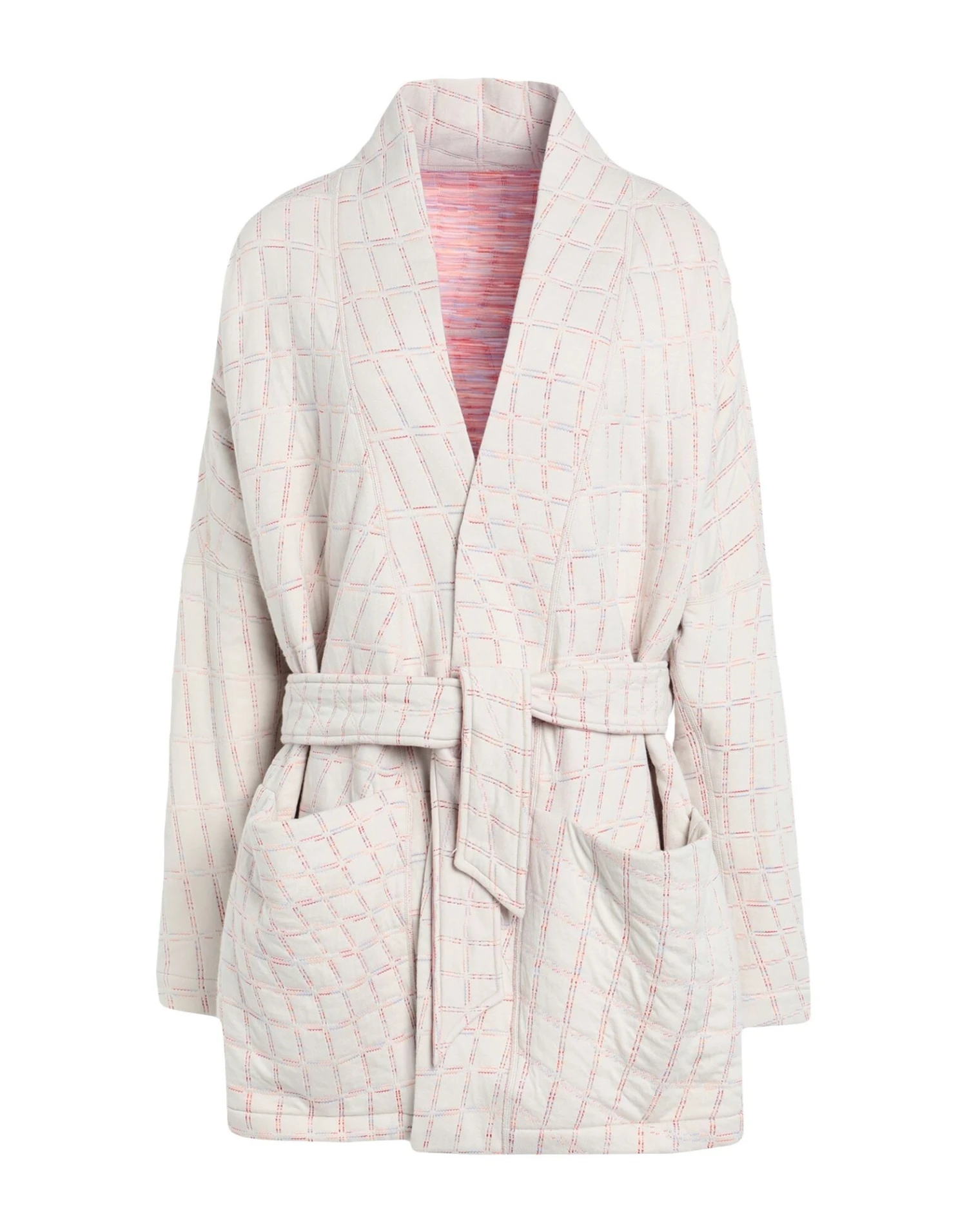 jersey, lightweight knit, belt, checked, deep neckline, long sleeves, multipockets, double face, lifestyle