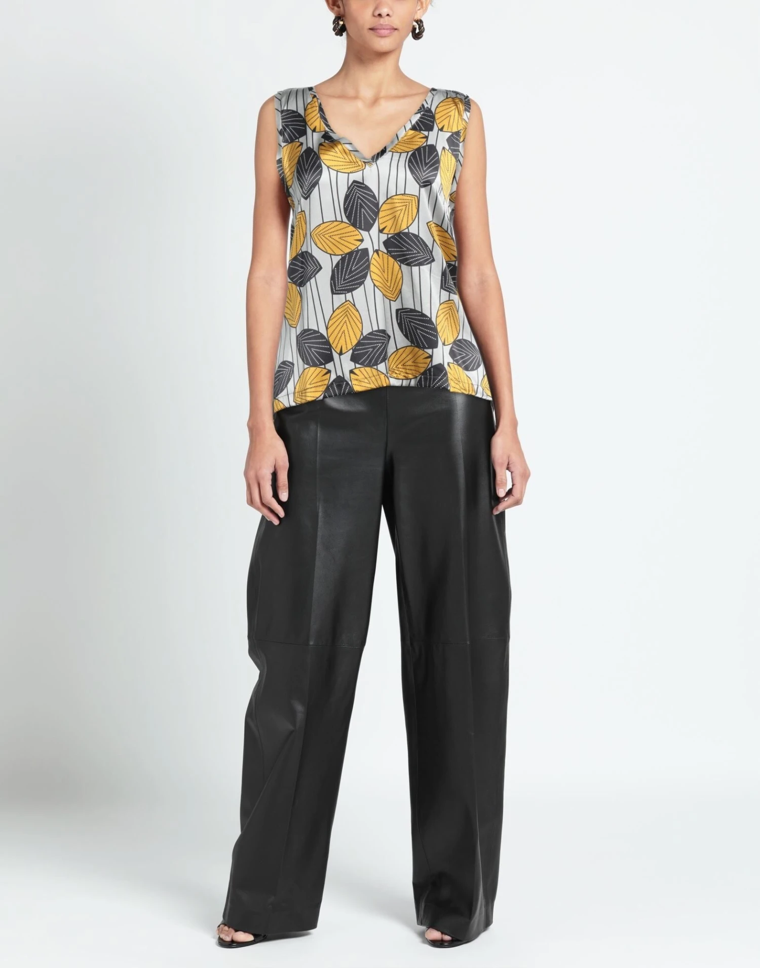 jersey, satin, no appliqués, multicolor pattern, floral design, v-neck, sleeveless, no pockets, stretch