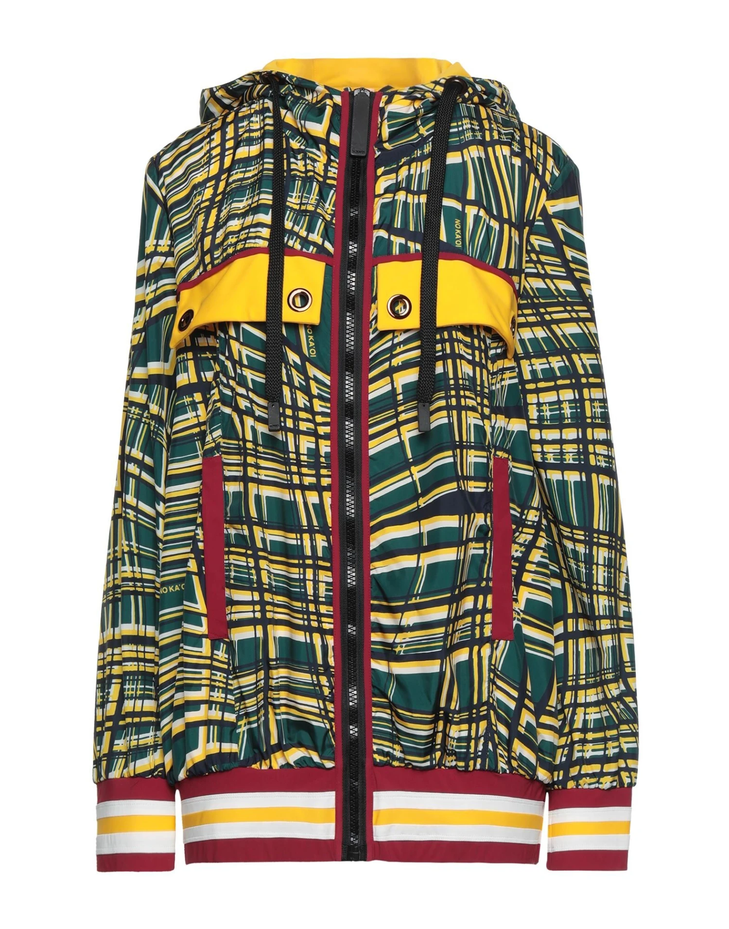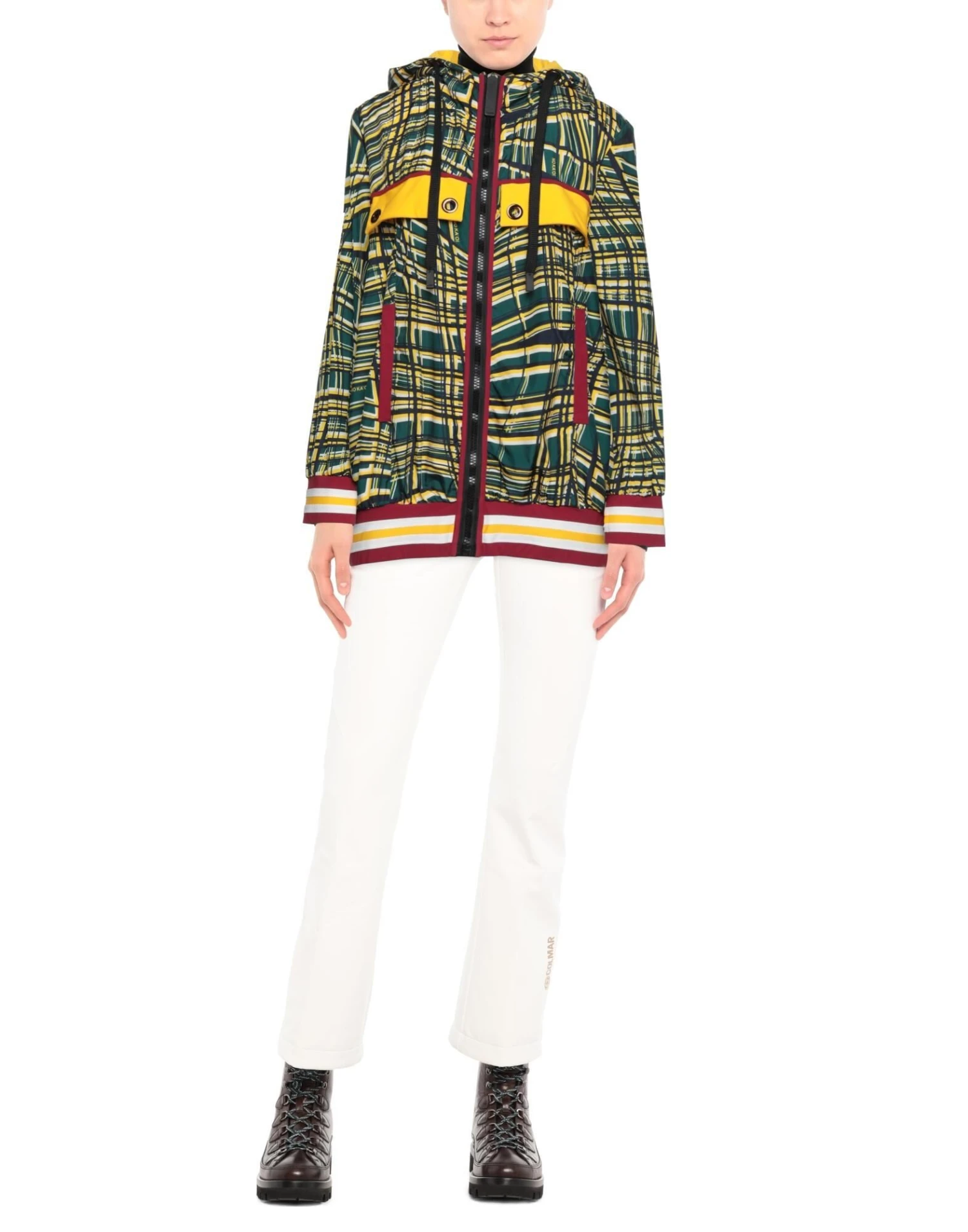 techno fabric, brand logo, multicolor pattern, hooded collar, single-breasted , long sleeves, partially lined interior, zipper closure, multipockets, stretch