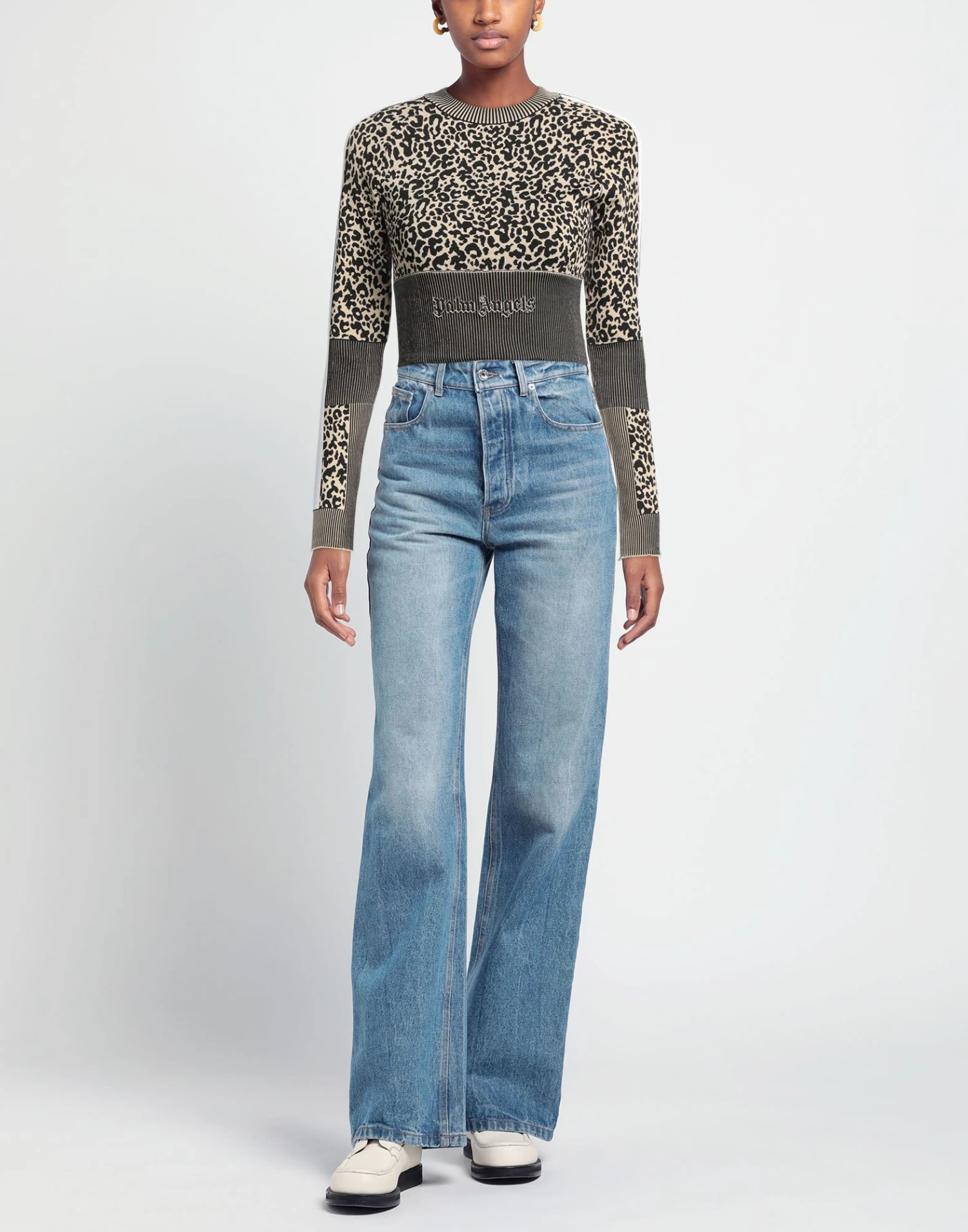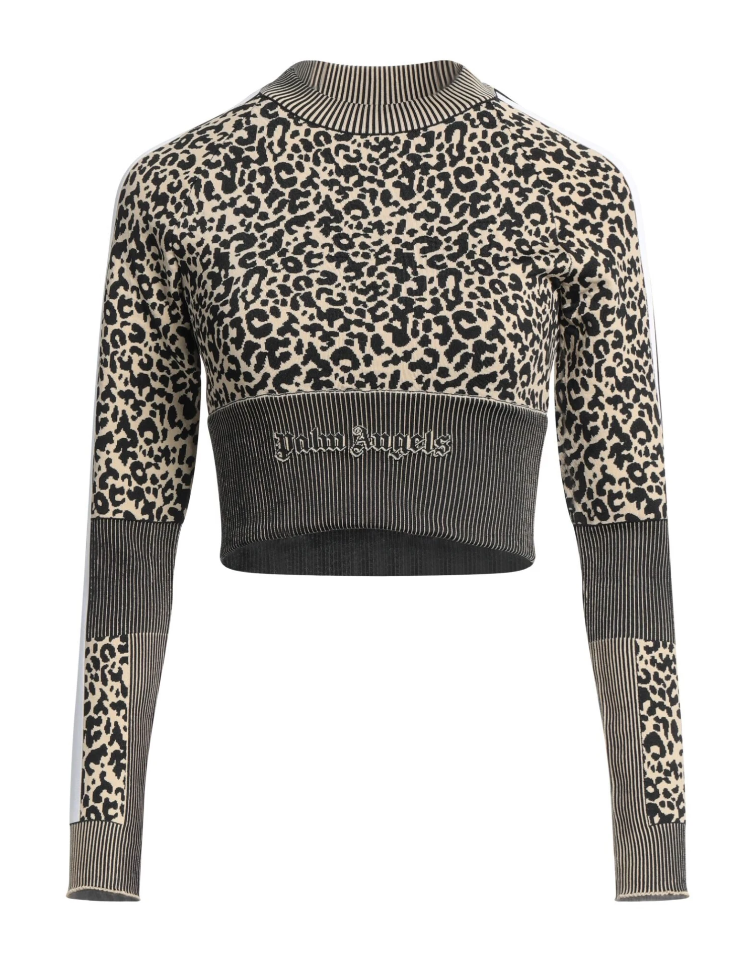 jersey, brand logo, side seam stripes, leopard-print, round collar, long sleeves, stretch
