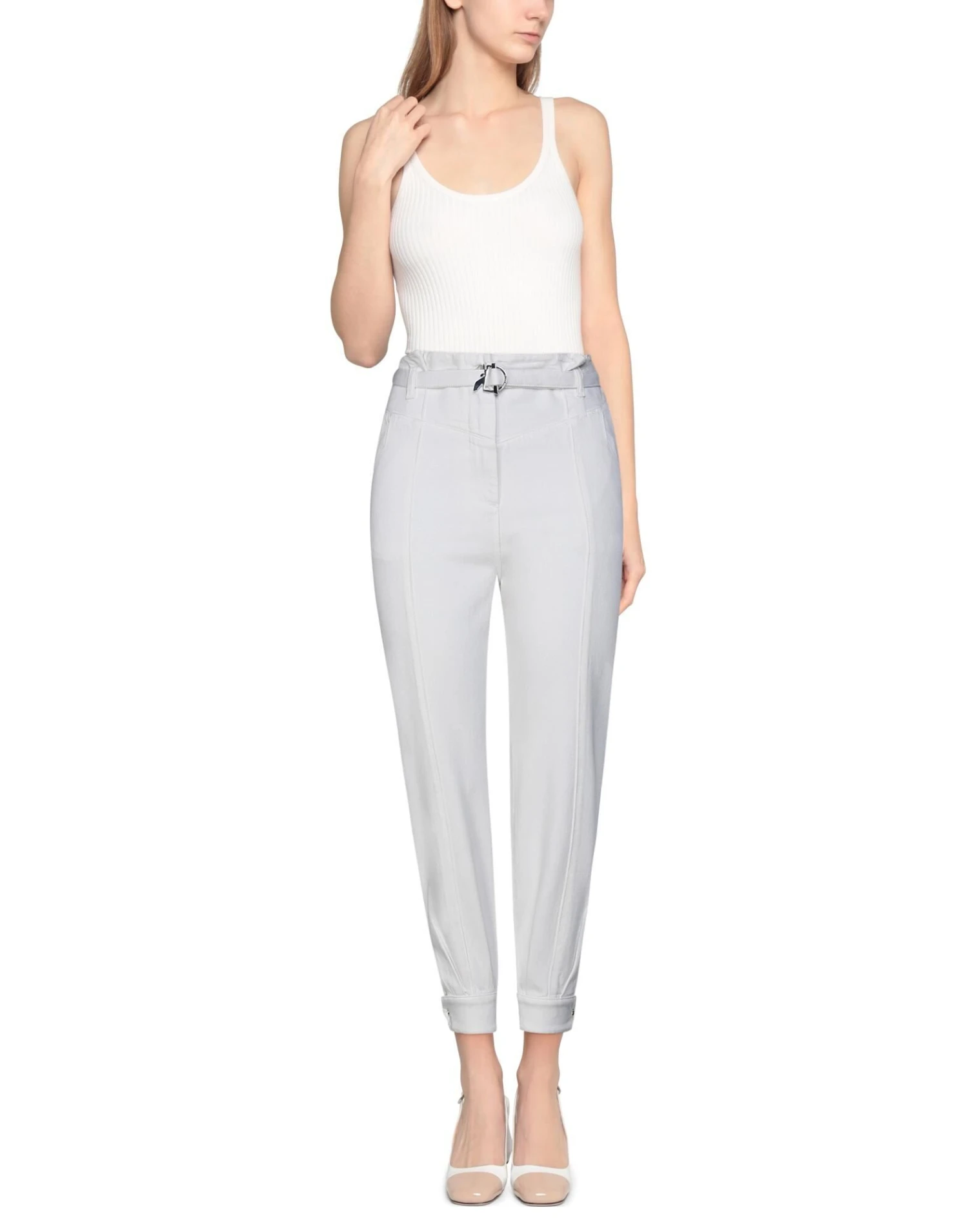 gabardine, solid color, brand logo, belt, high waisted, regular fit, tapered leg, zipper closure, multipockets, stretch