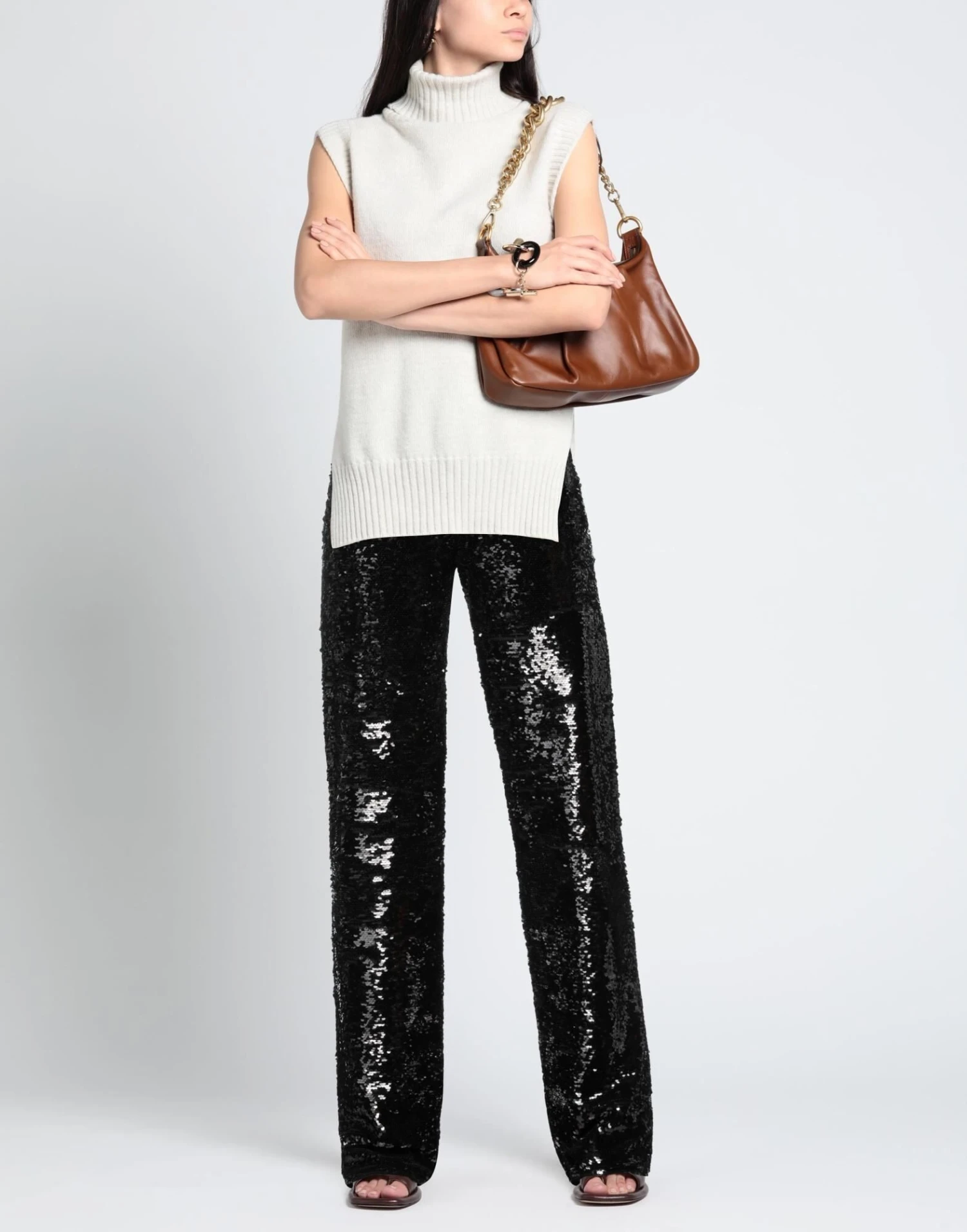 tulle, sequins, solid color, high waisted, regular fit, straight leg, drawstring closure, multipockets