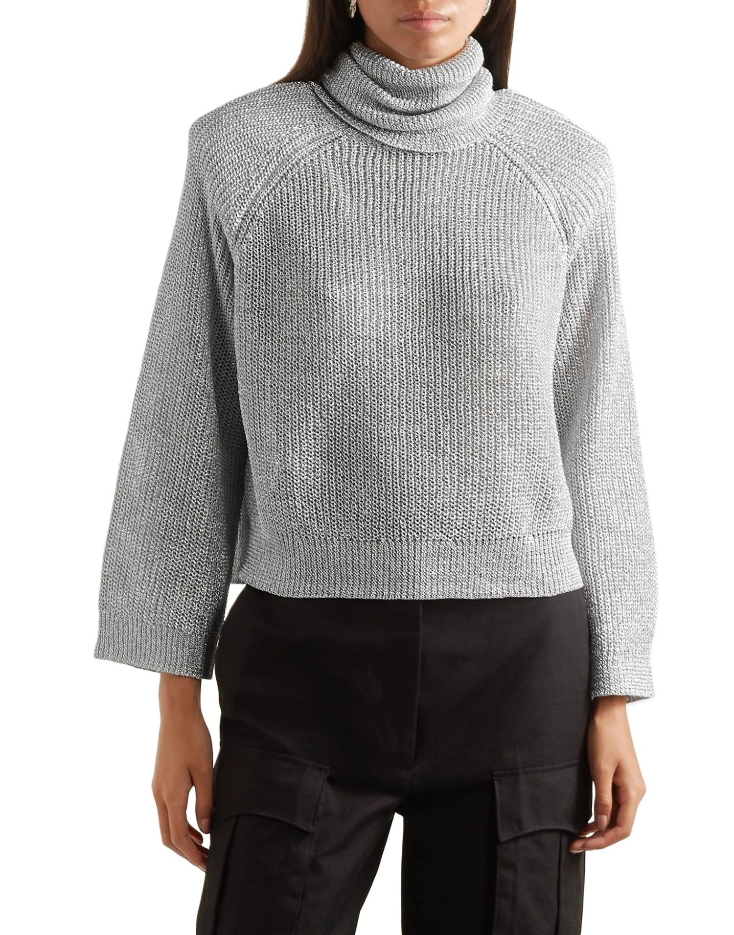 knitted, lamé, no appliqués, medium-weight knit, turtleneck, basic solid color, long sleeves, no pockets