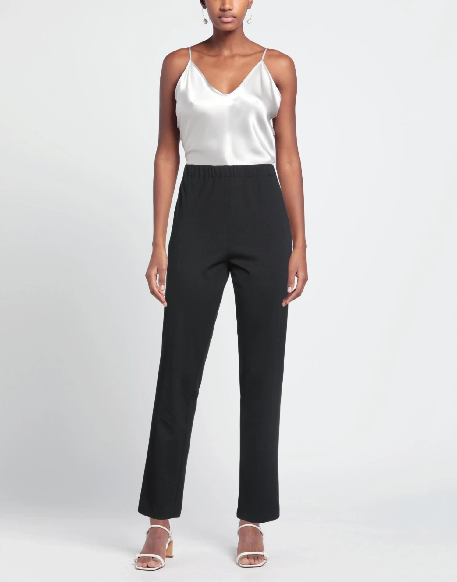 jersey, no appliqués, solid color, high waisted, elasticized waist, tapered leg, regular fit, multipockets, stretch, tailored