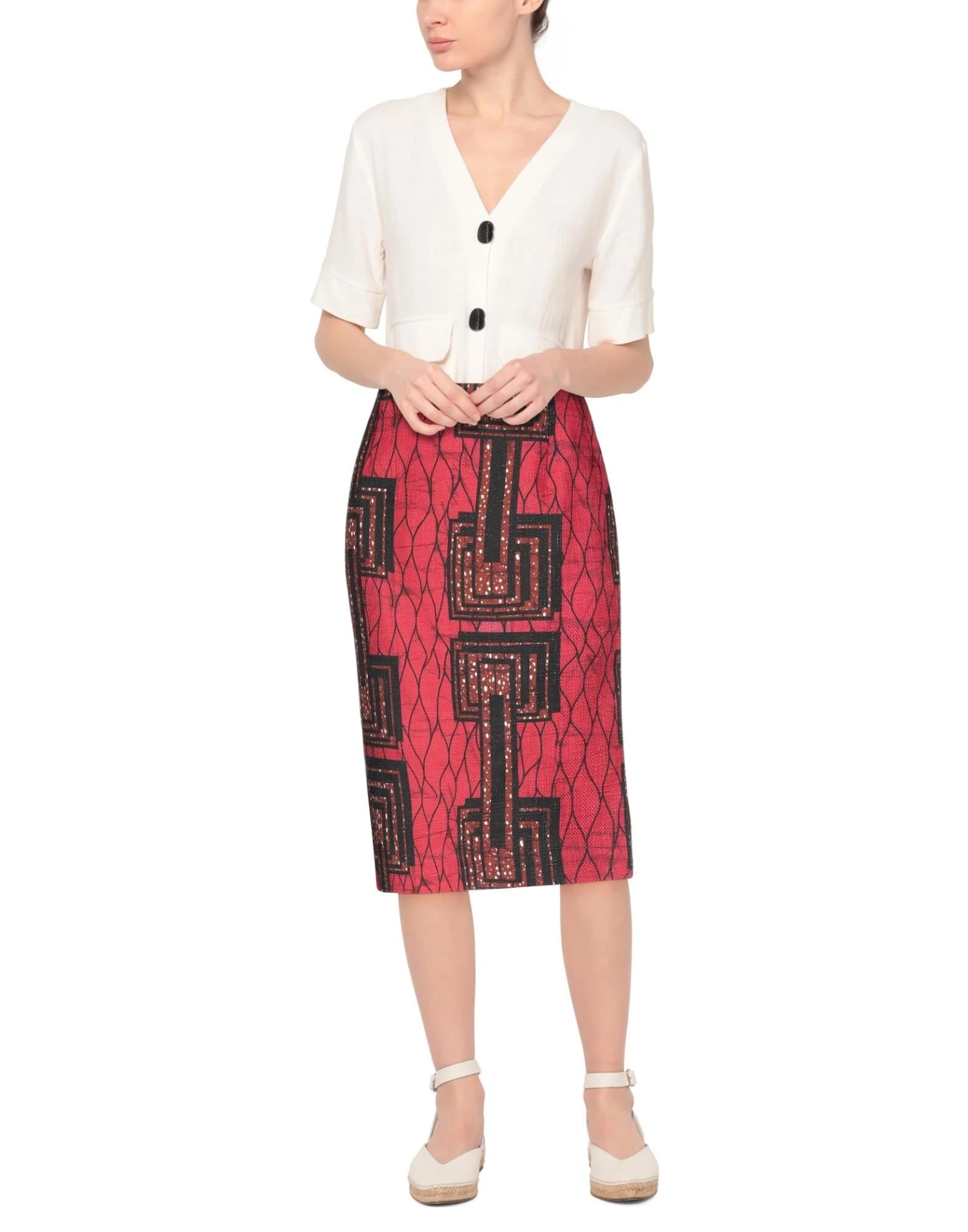 plain weave, darts, multicolor pattern, no pockets, no fastening, zipper closure, unlined, rear slit, stretch