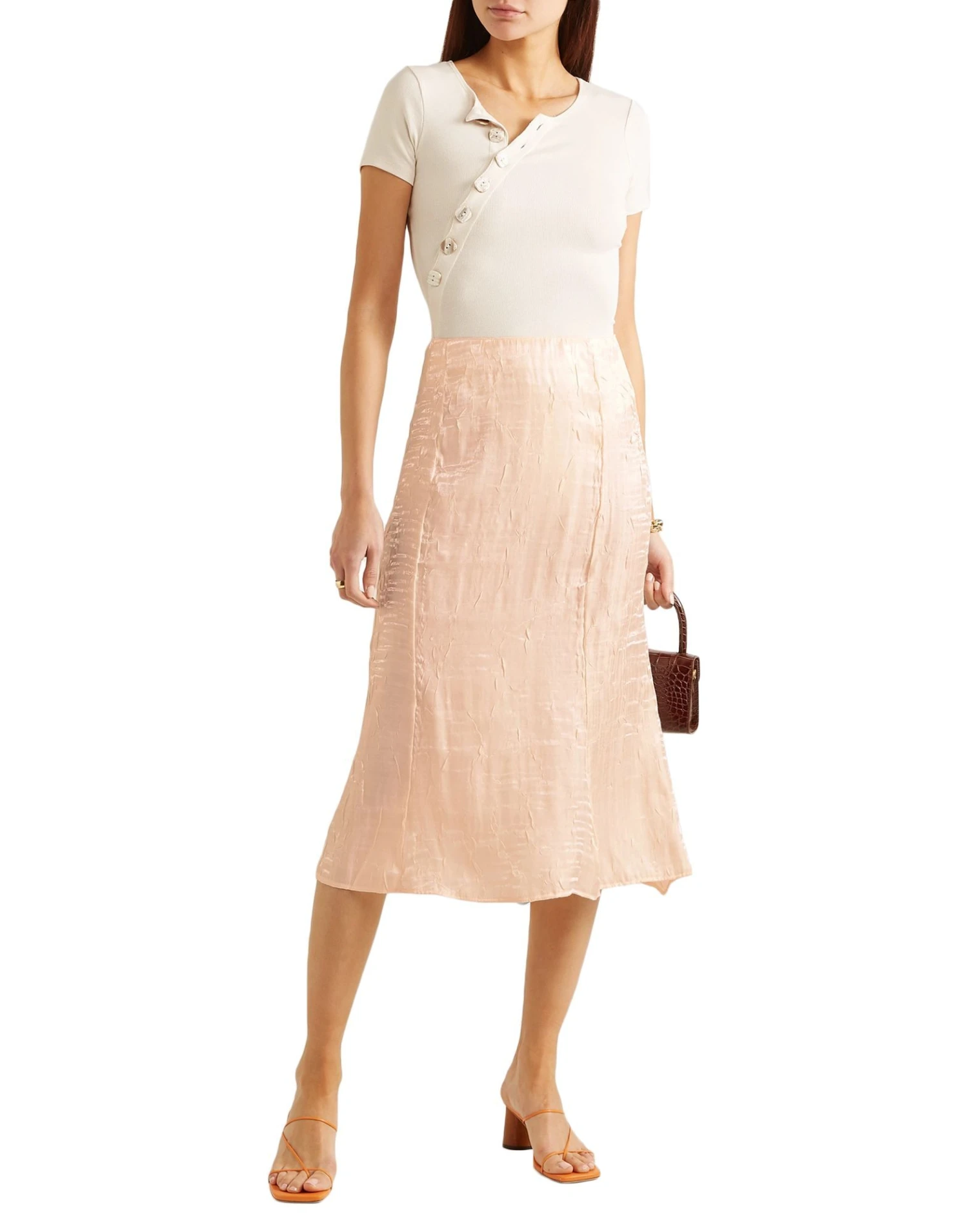 satin, laminated effect, unlined, button closing, front closure, no appliqués, solid color