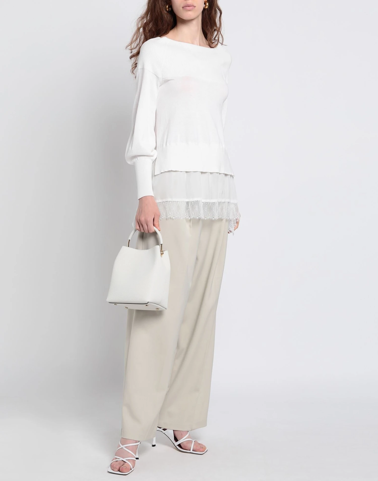 crepe, knitted, no appliqués, solid color, round collar, long sleeves, no pockets, lightweight knit