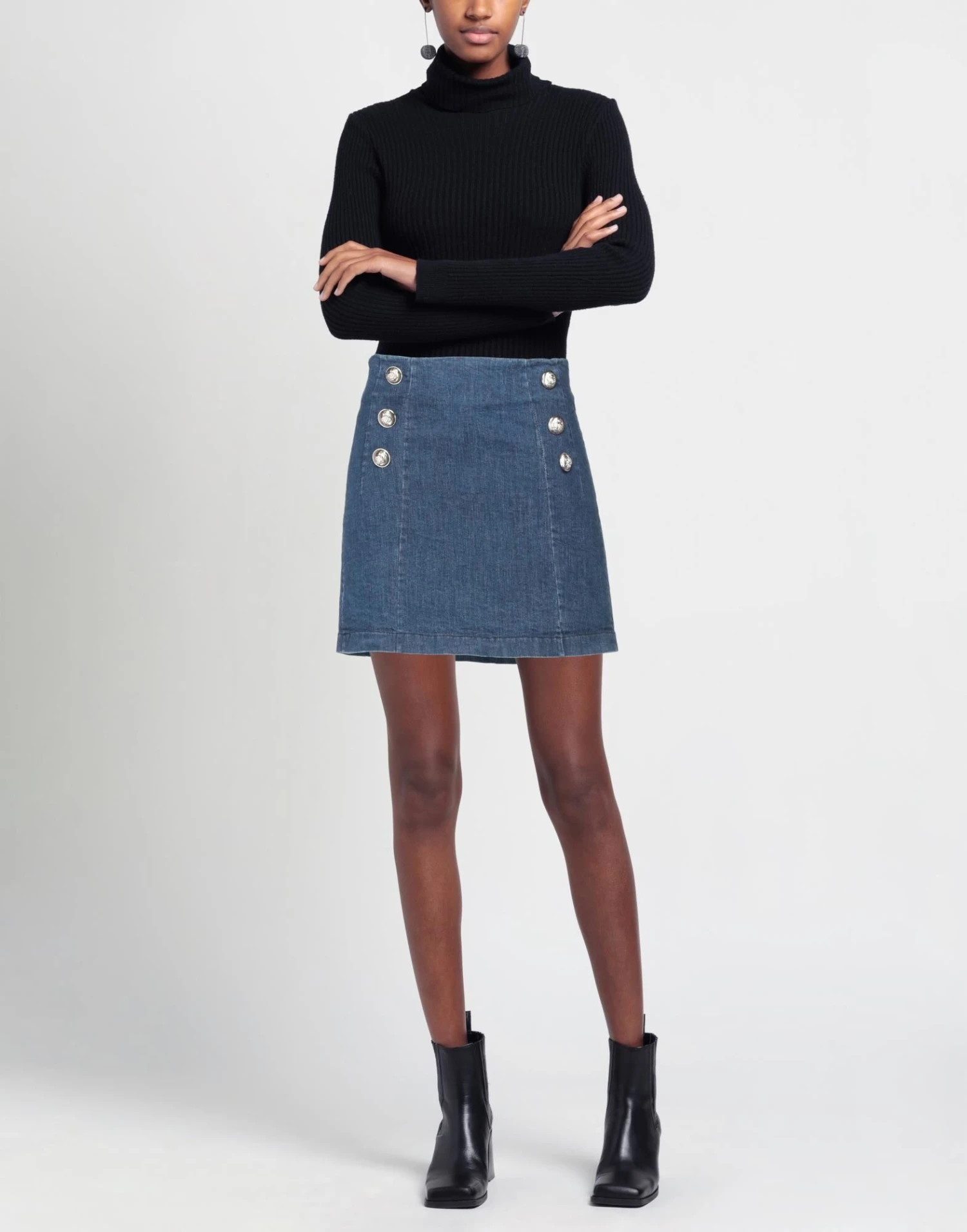 denim, no appliqués, solid color, medium wash, unlined, no pockets, stretch, flared model