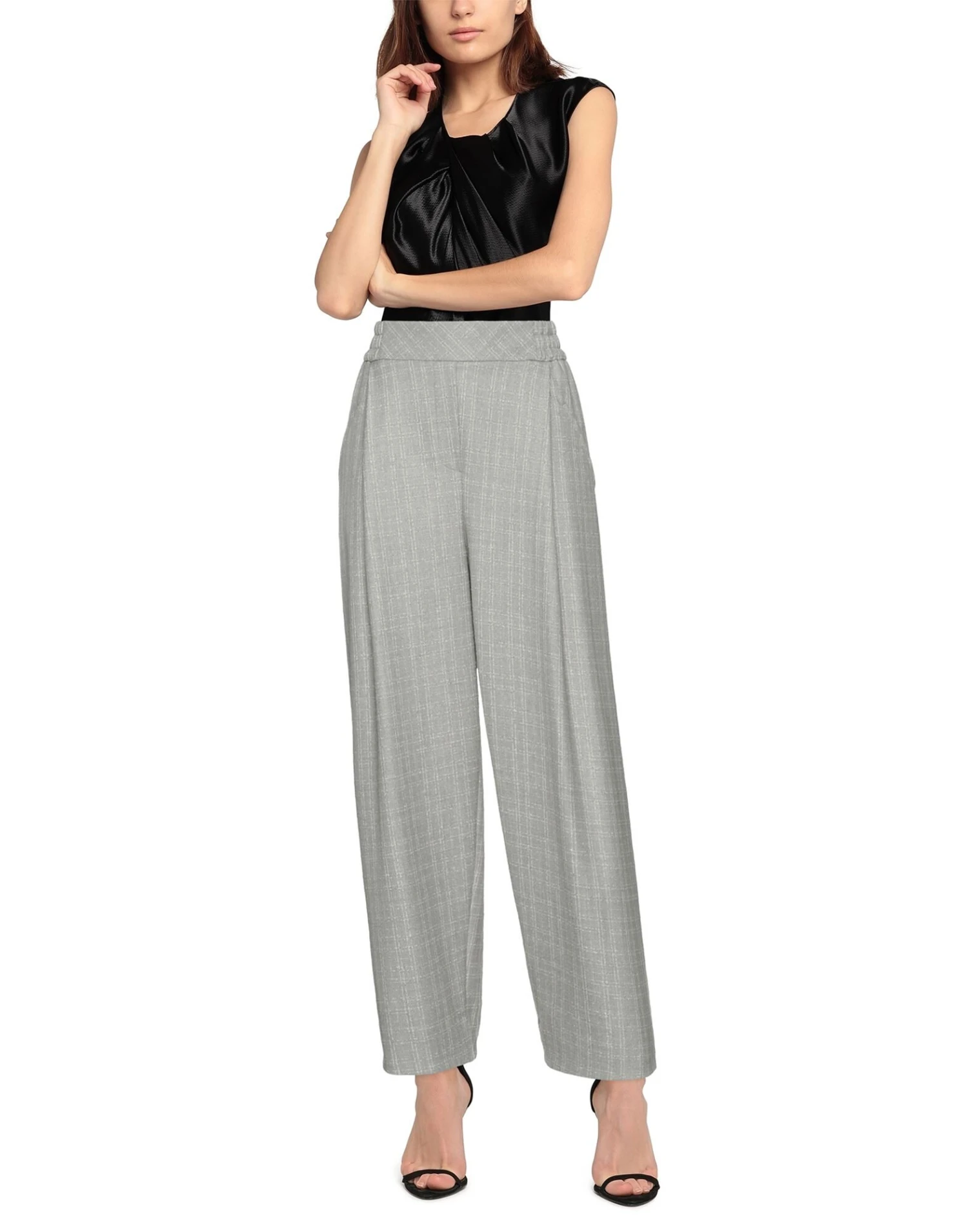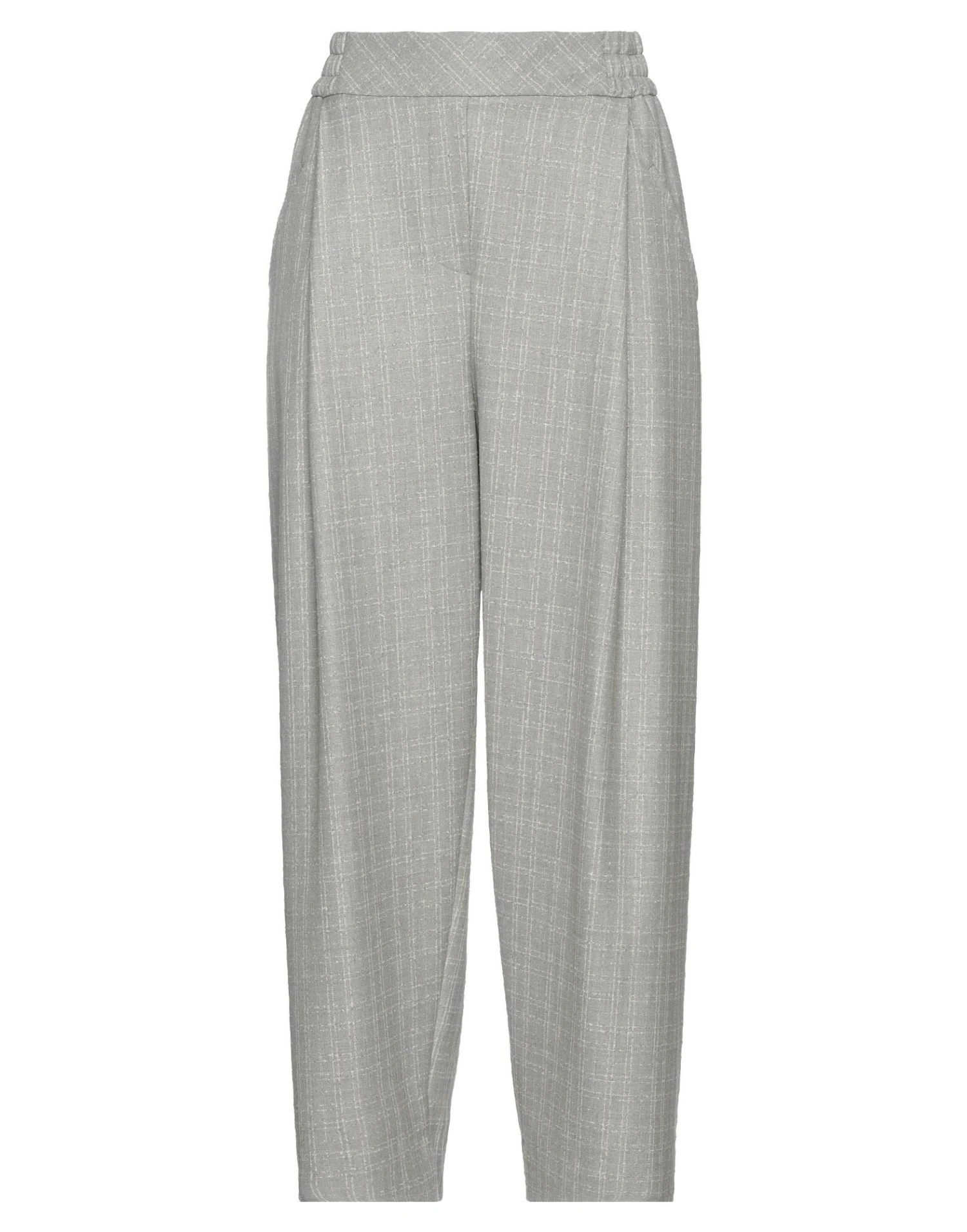 tweed, no appliqués, checked, elasticized waist, tapered leg, high waisted, comfort fit, multipockets, stretch